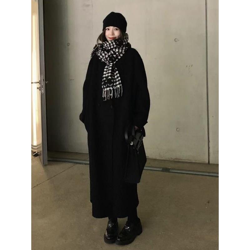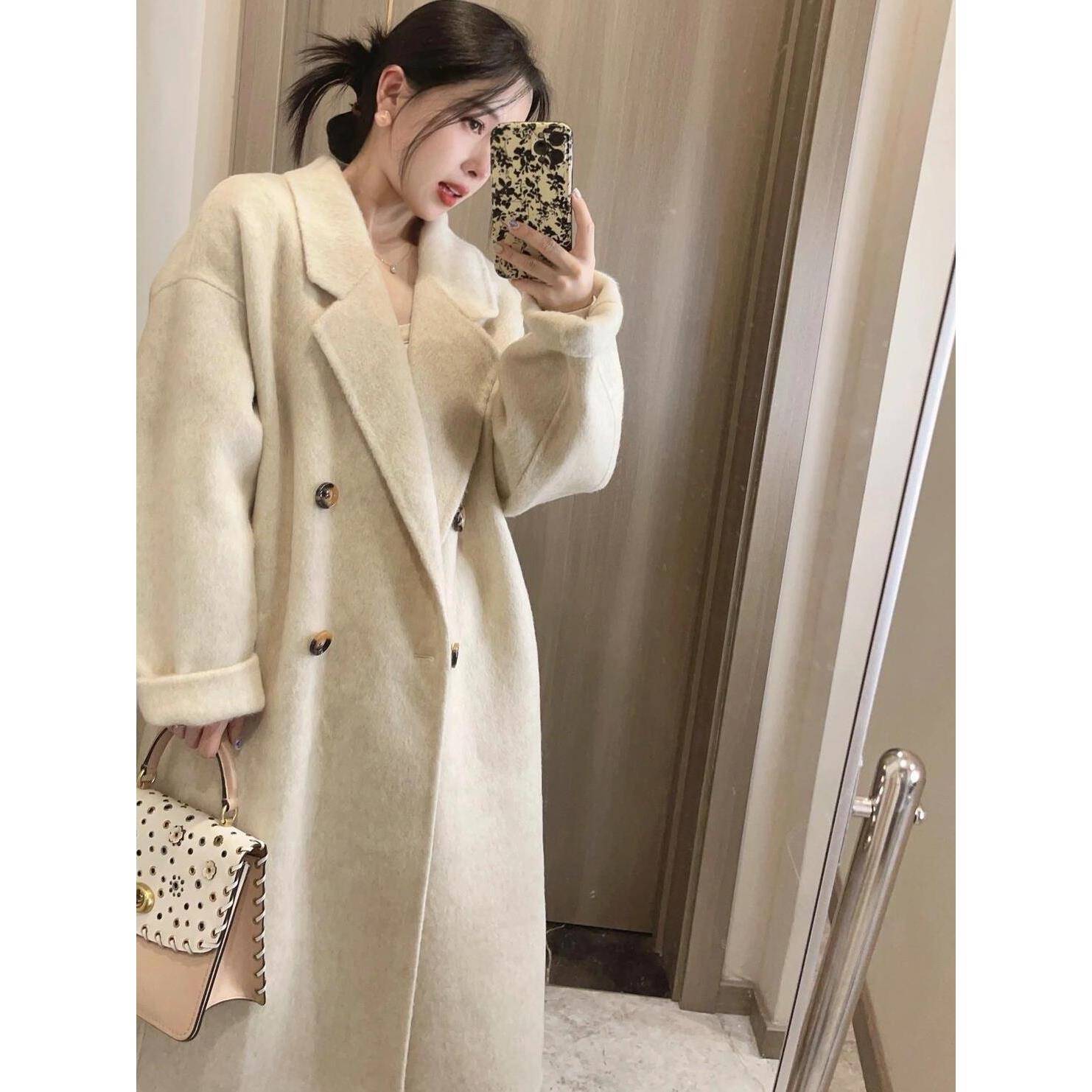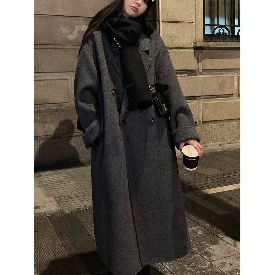 黑灰色双面羊绒大衣女2024秋冬新款中长款高级感羊毛呢子韩系外套