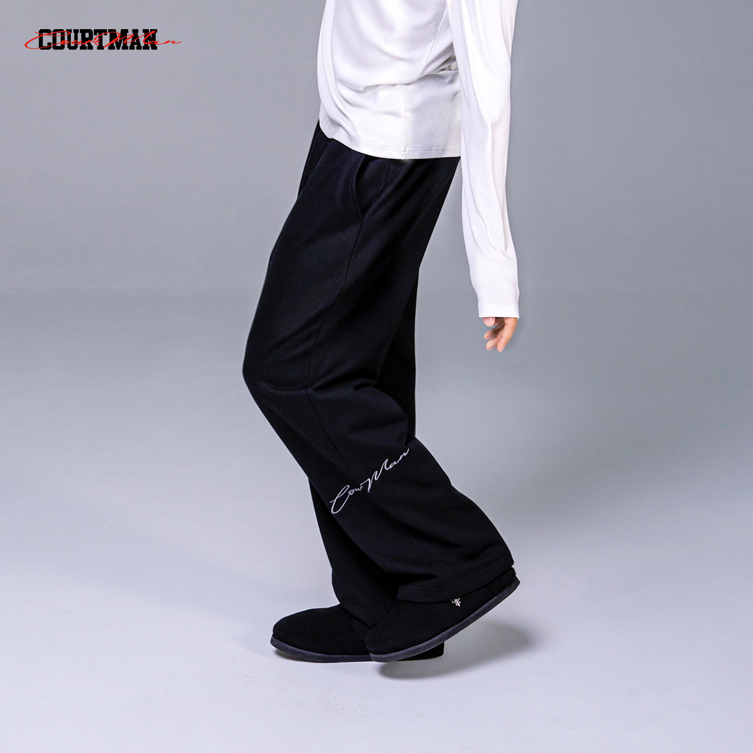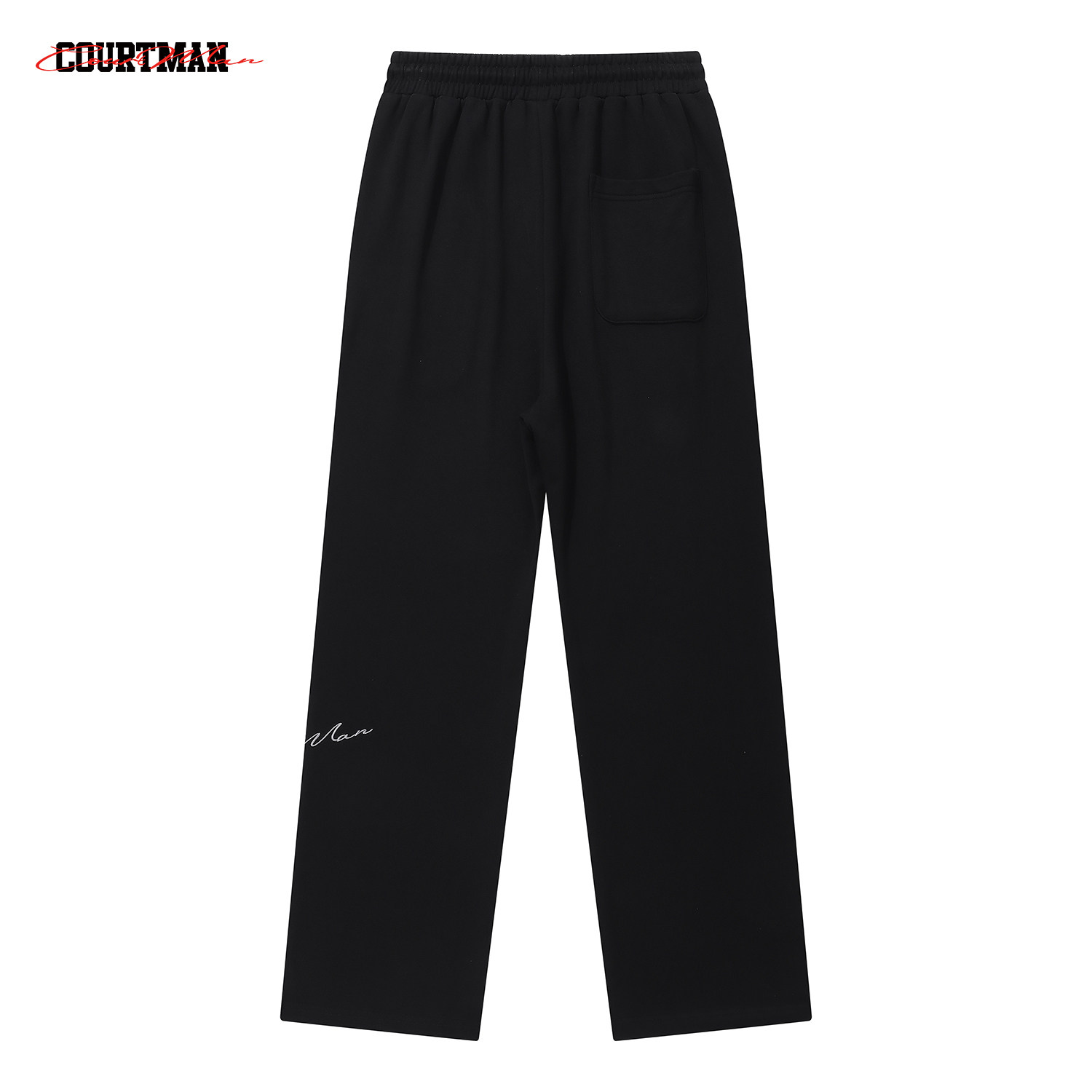 COURTMAN野球帝刺绣长裤秋季新款阔腿宽松直筒情侣休闲裤子男国潮