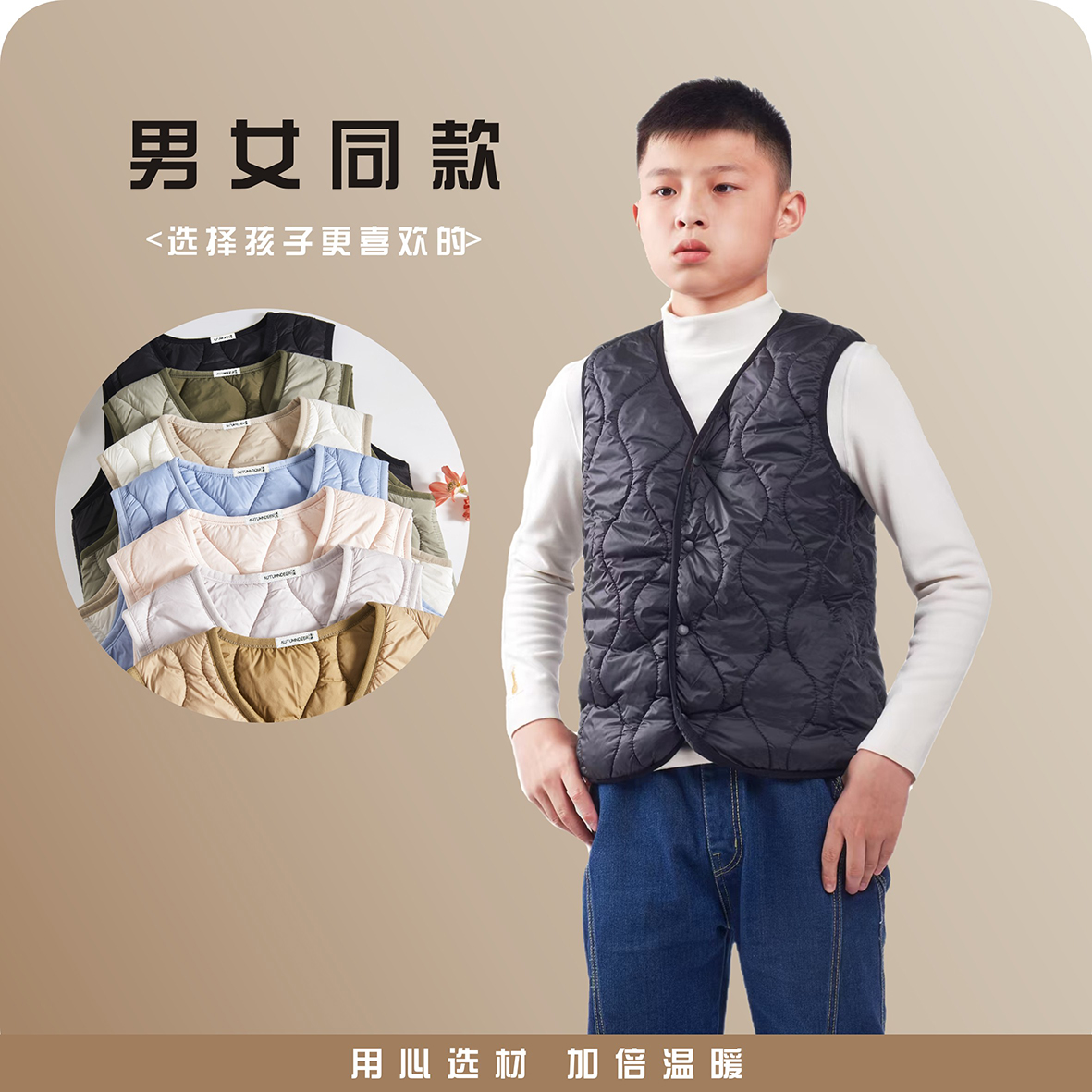 秋鹿儿童马甲女童秋冬季加绒加厚校服神器保暖男童背心家居服单衣