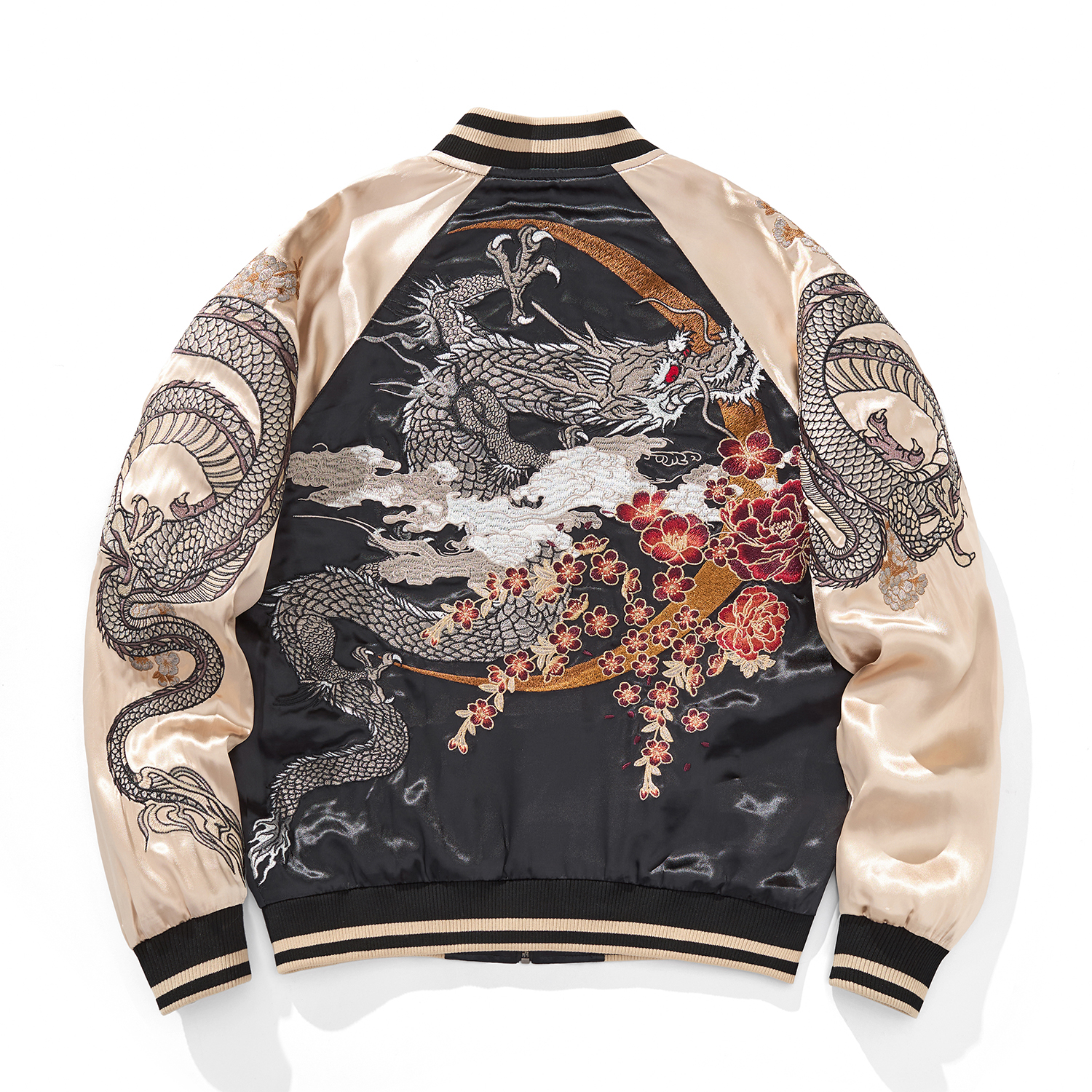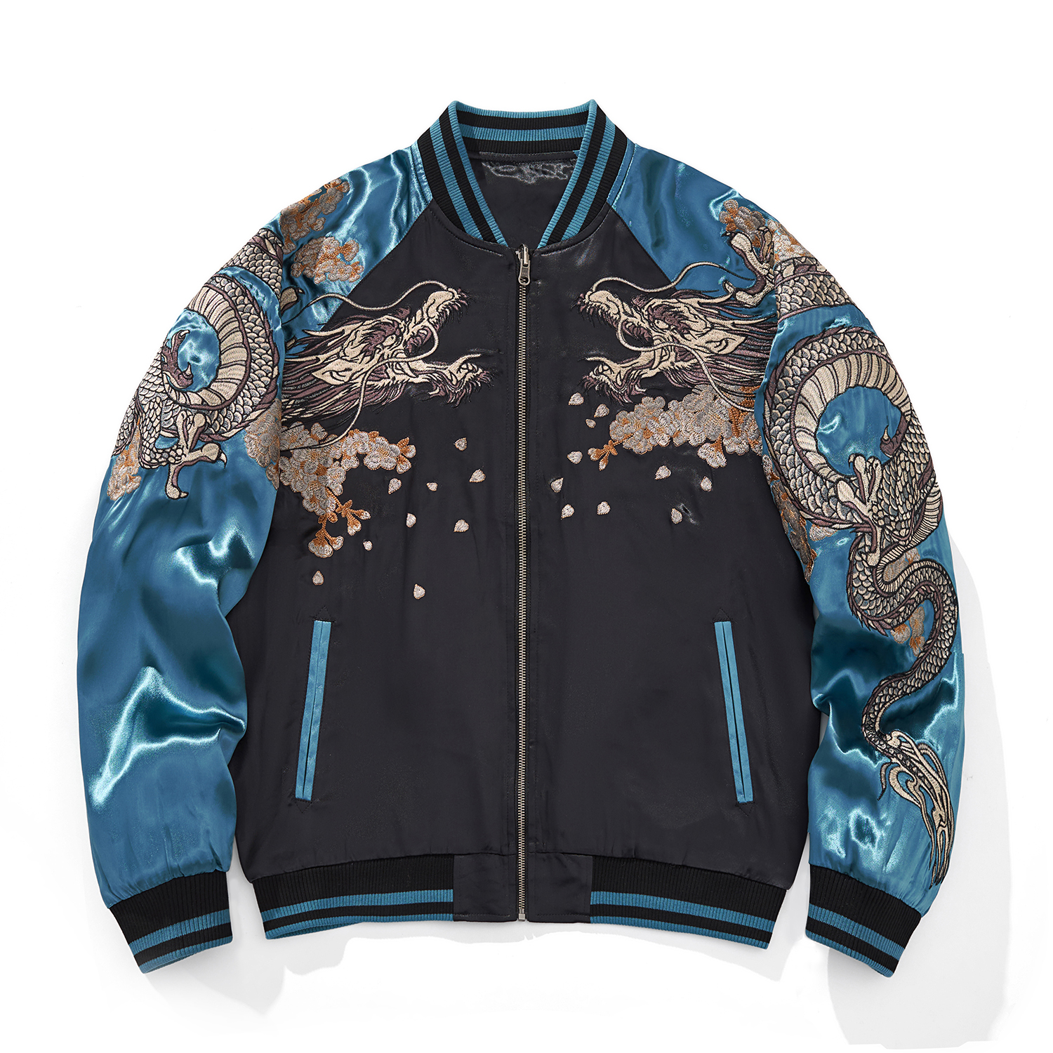 重工龙刺绣横须贺夹克过肩龙外套丝光缎面个性男女棒球服上衣国风