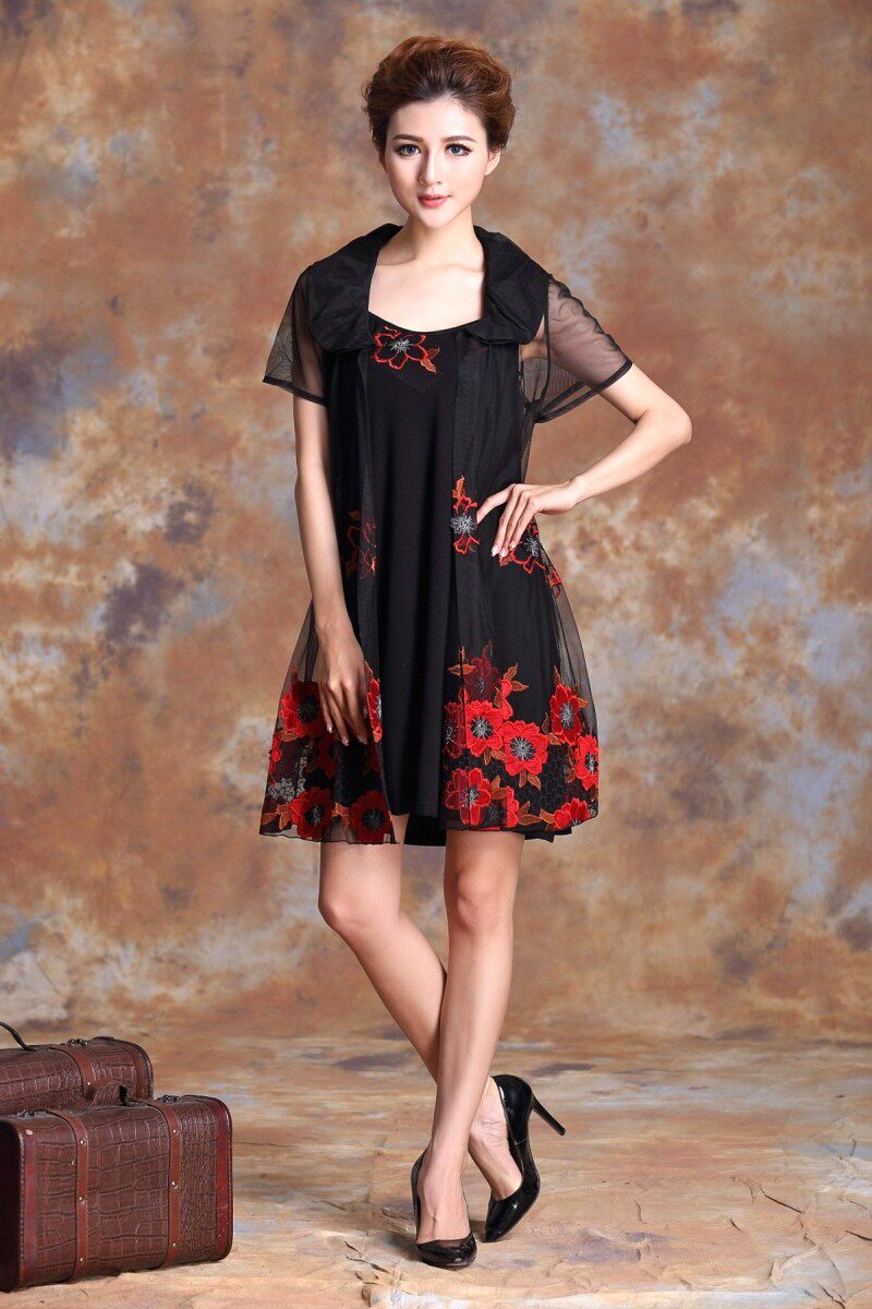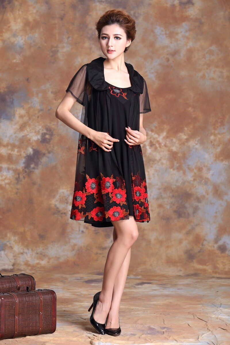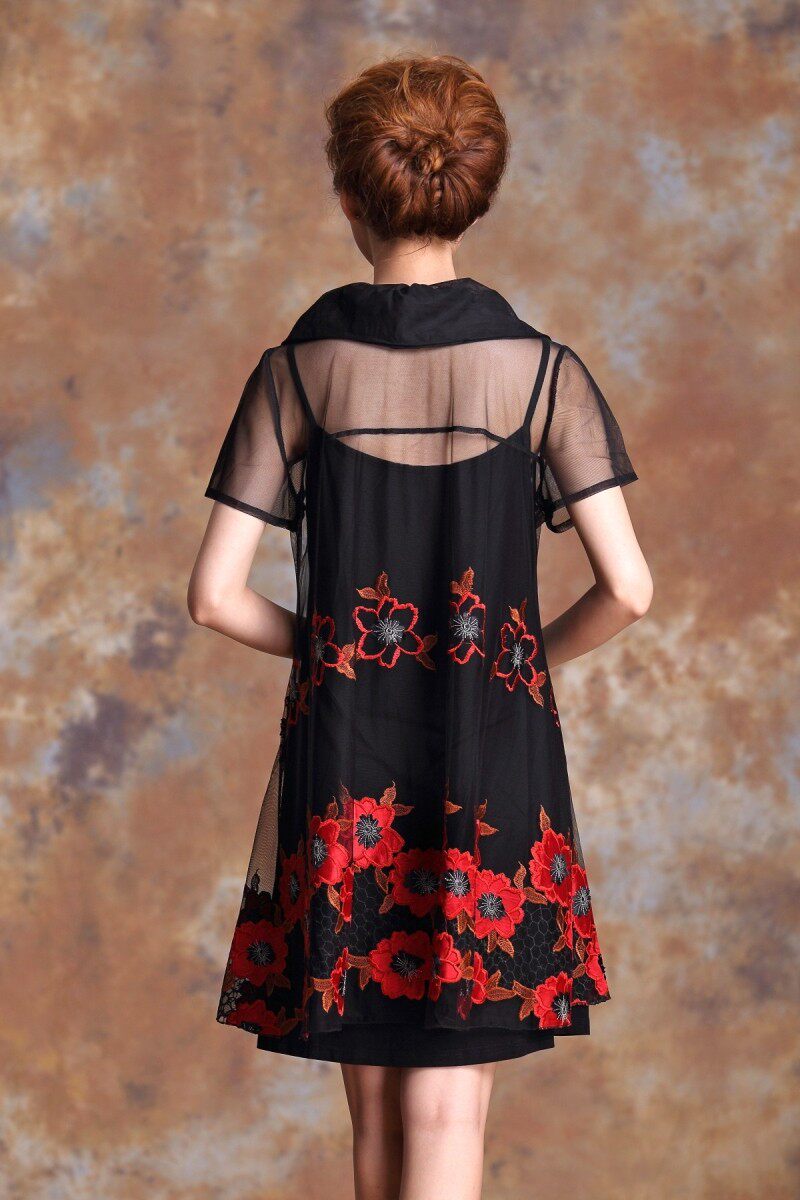夏季网纱刺绣宽松胖mm雪纺蕾丝裙