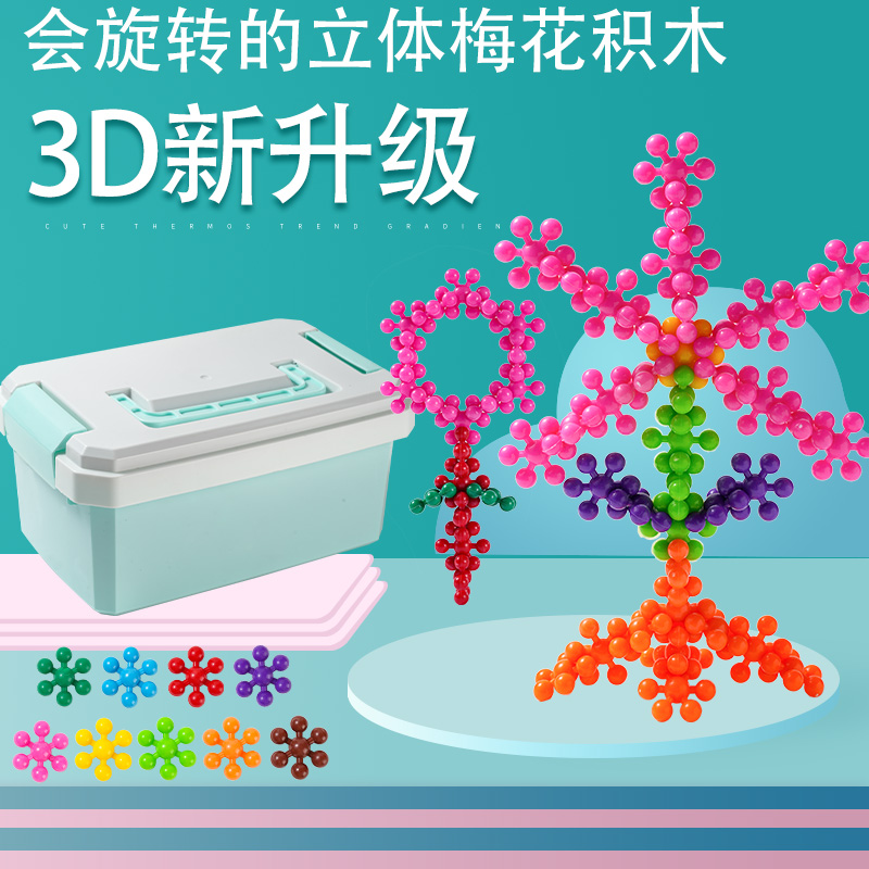 幼儿园雪花片男女孩拼插3D立体梅花积木儿童益智早教玩具拼装拼图