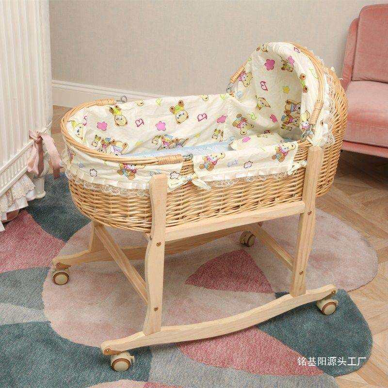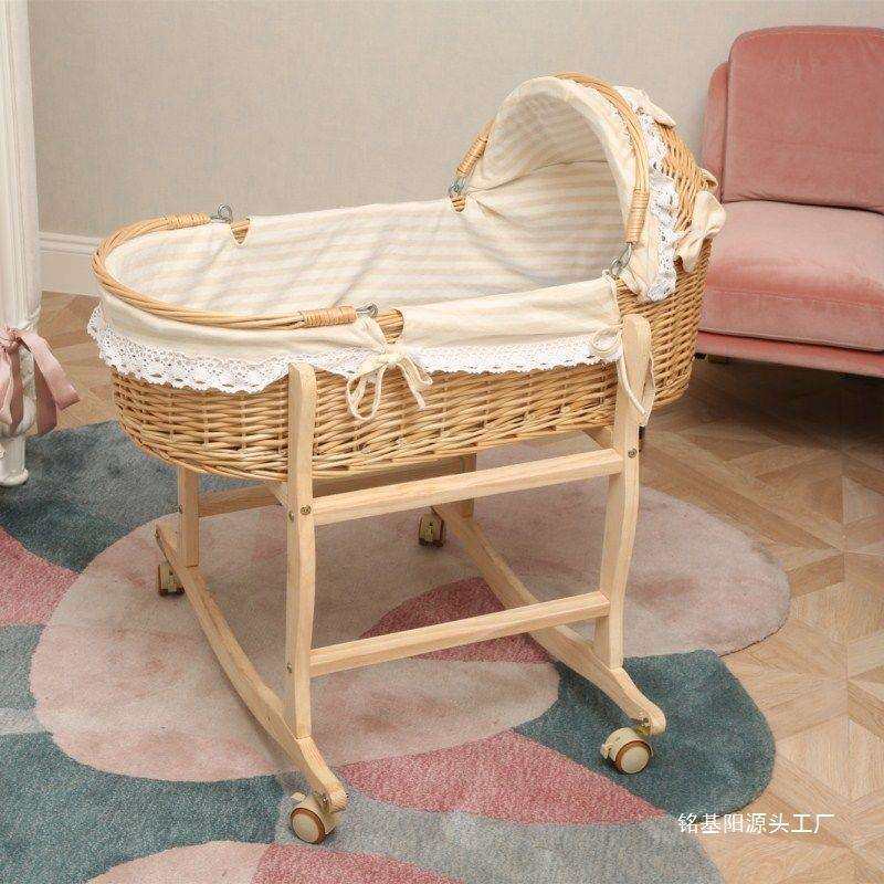 藤编新生便携手提篮车载睡篮小孩摇篮床摩西摇窝外出婴儿悠车老式