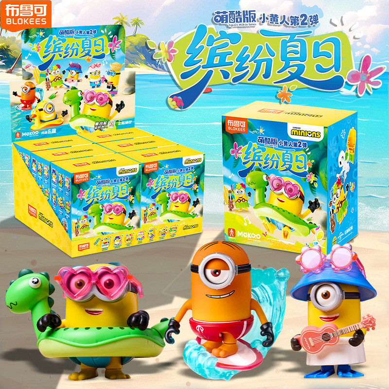 布鲁可积木人小黄人萌酷版第二弹缤纷夏日可动拼装动漫周全套玩具