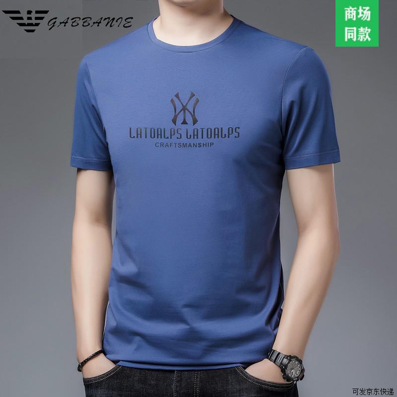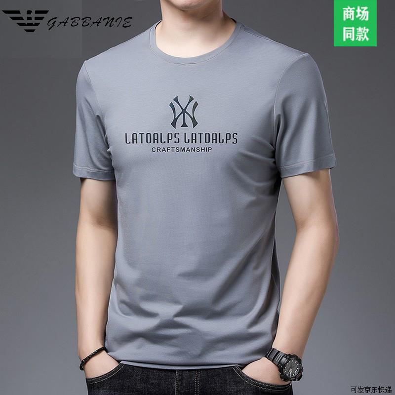 GABBANIE2024夏季新款丝光棉男士短袖t恤圆领宽松纯棉上衣服潮