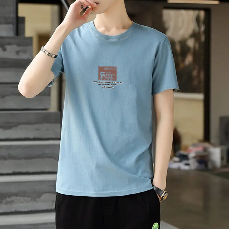 男士短袖t恤韩版潮流圆领夏季印花T恤半袖男装宽松上衣打底衫体恤