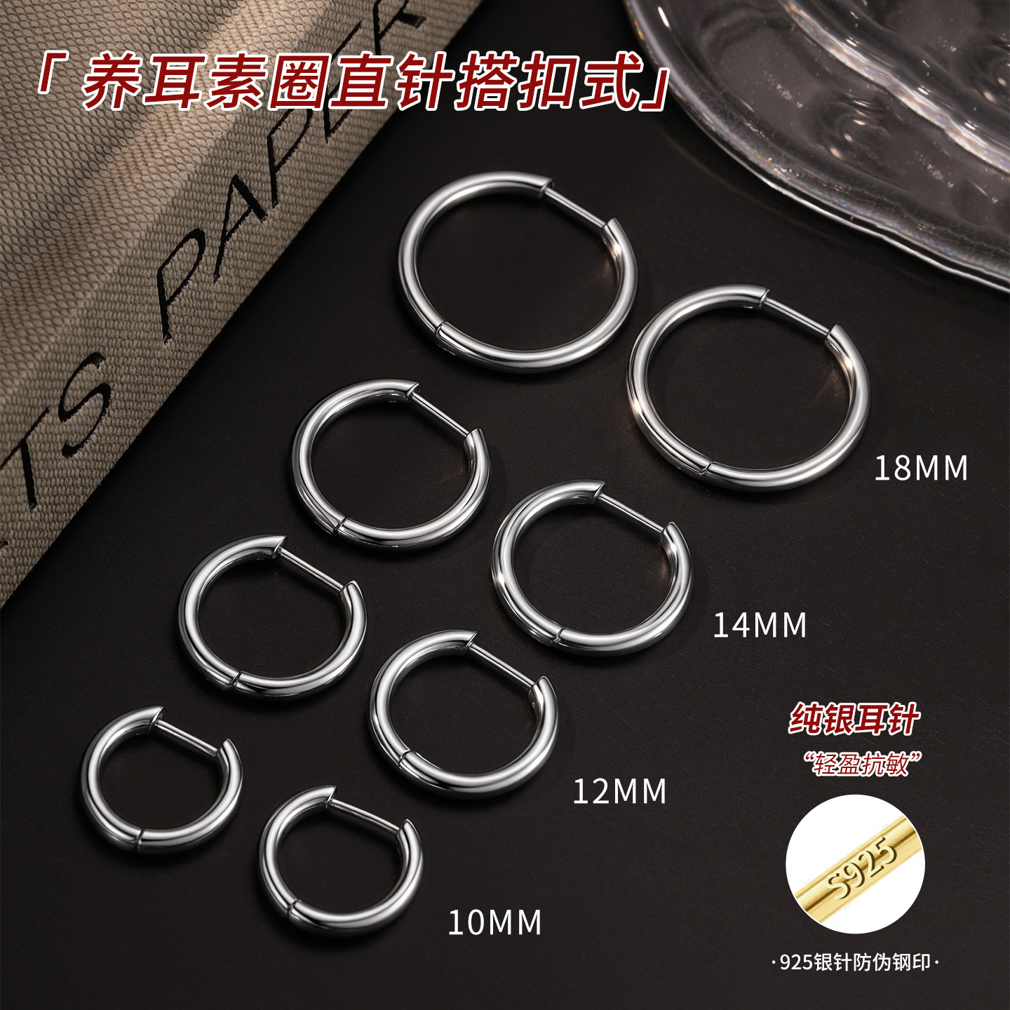 直针耳圈纯银耳饰素圈耳环圈圈耳环2026新款爆款高级感耳扣银耳环