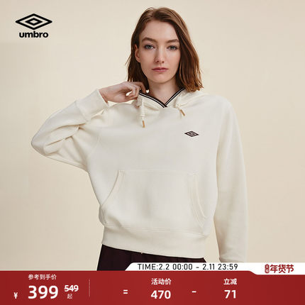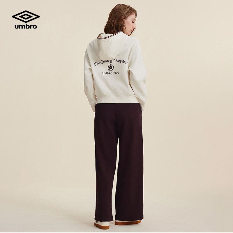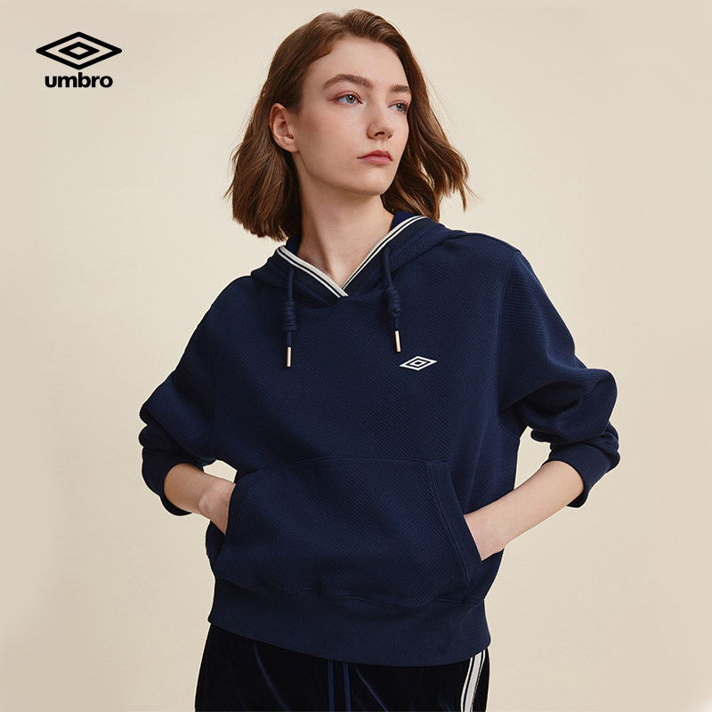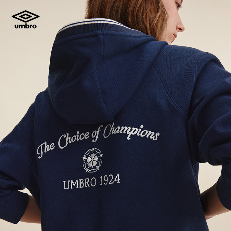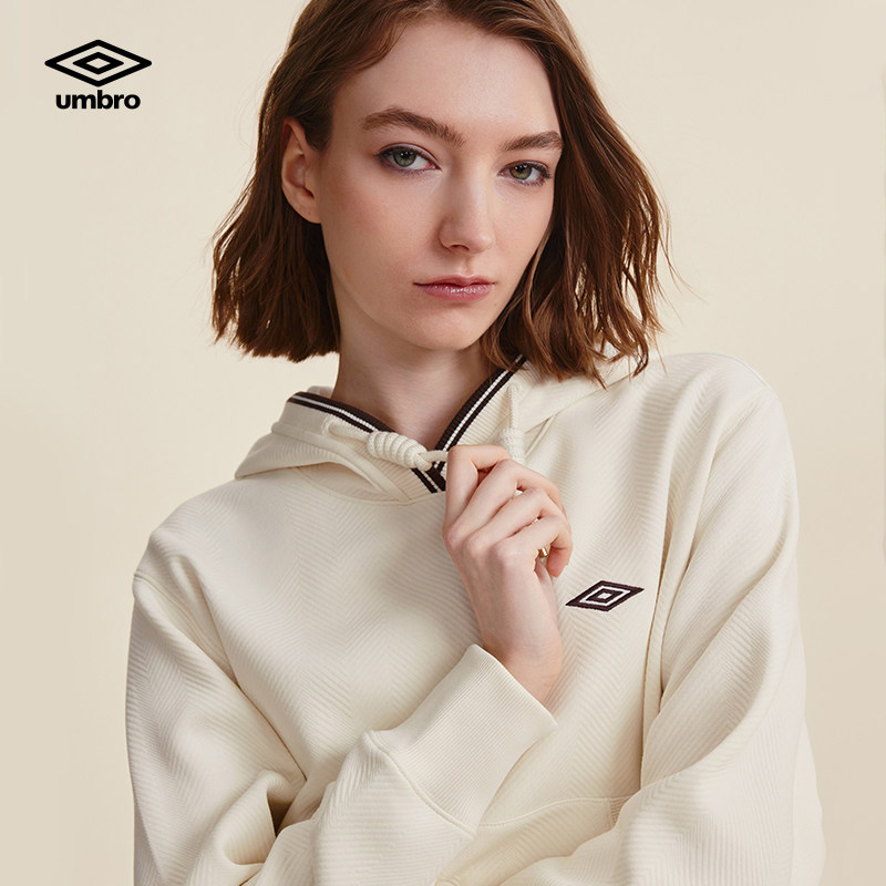 umbro茵宝官方运动新款连帽复古肌理感刺绣套头宽松长袖卫衣女