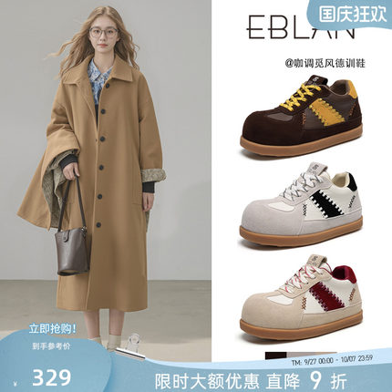 EBLAN/伊伴卡皮巴拉德训鞋女2025新款秋季内增高丑萌软底休闲板鞋