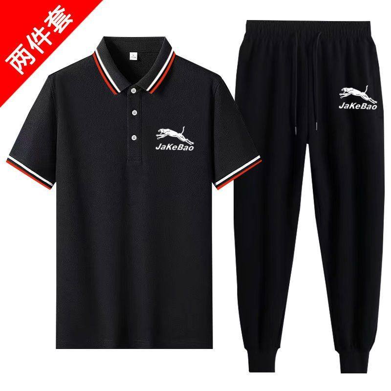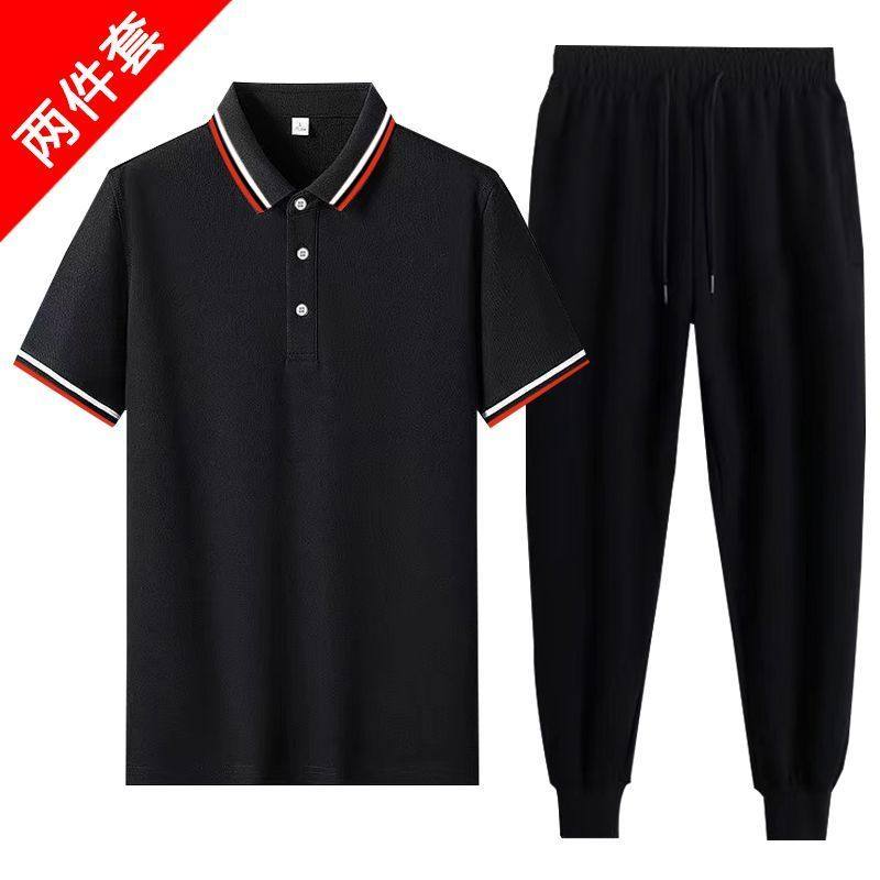 夏季薄款POLO工作服中老年爸爸装男士套装冰丝短袖t恤运动1/2件套