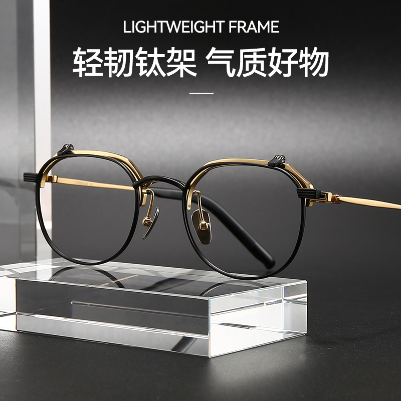 纯钛手工双层翻盖上翻远近两用老花近视眼镜圆框男女款超轻免摘下