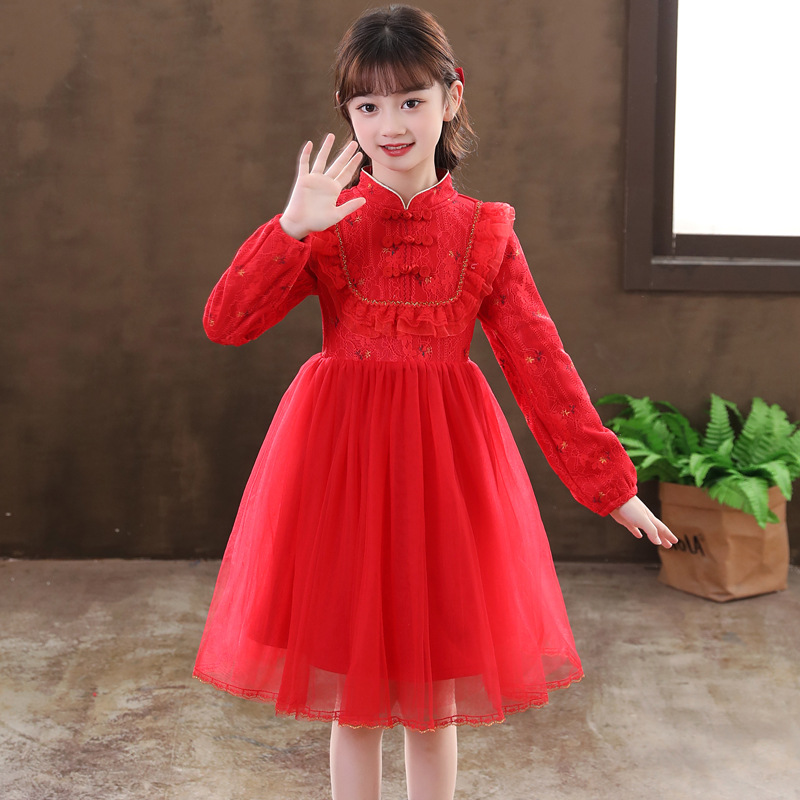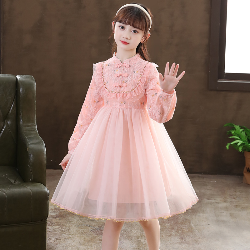 女童改良旗袍连衣裙秋冬儿童古风礼服纱裙小女孩冬季汉服公主裙子
