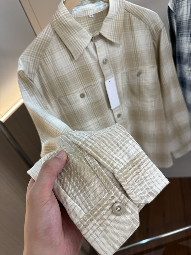 重磅主推式衣间!秋季男女外贸水洗棉柔软双口袋格子长袖衬衫外套
