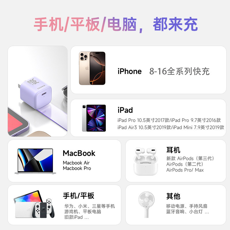 罗马仕30W适用苹果充电器iPhone16充电头氮化镓PD快充头15Promax