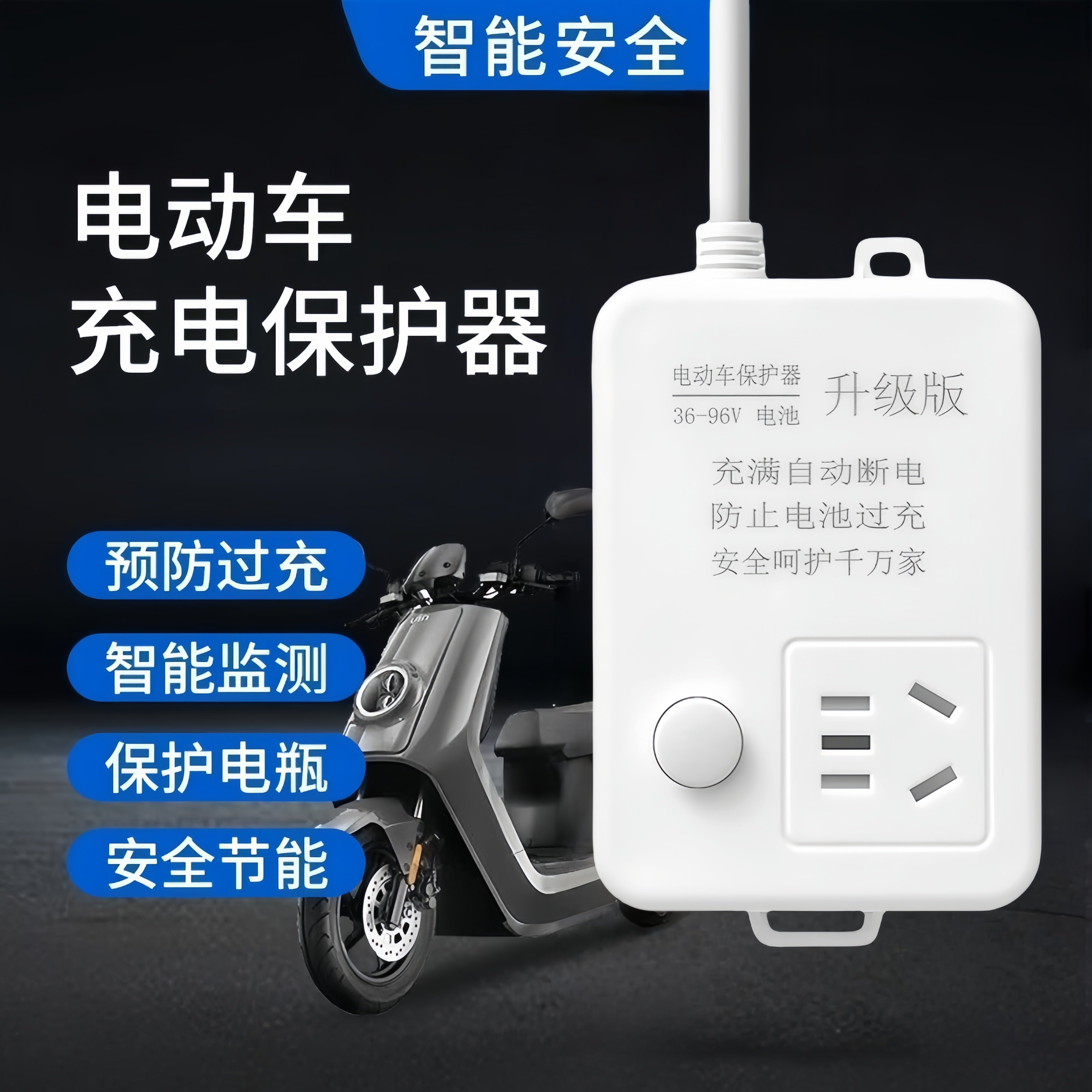 智能电动车充电保护器充满自动断电插座防过充电瓶车三轮车延长线