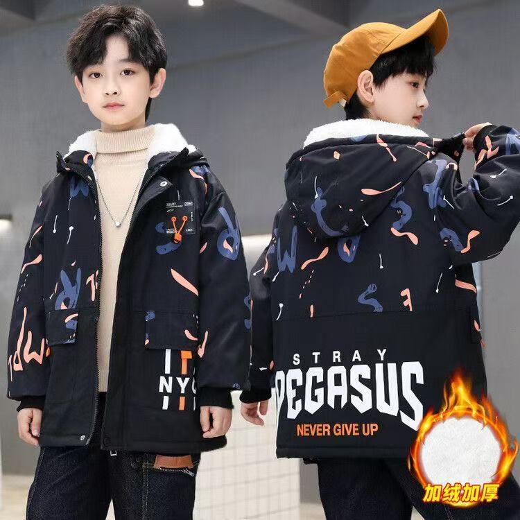 男孩中大童加绒外套冬装2025新款棉袄加厚冲锋衣儿童冬季男童棉服