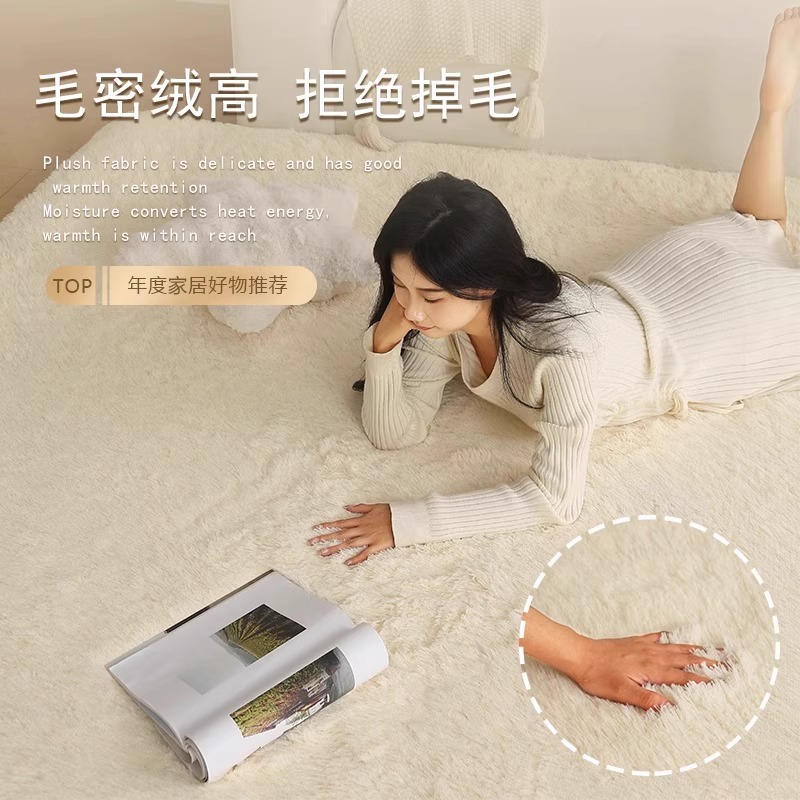 德国长毛绒床边毯高级感卧室客厅地毯茶几毛绒加厚房间防滑地垫