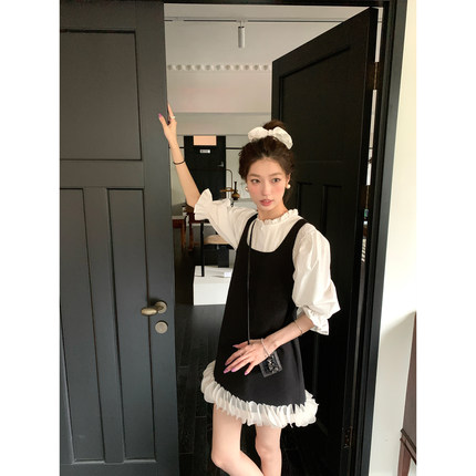 SourceWithU戴莉的猫 2色设计感花瓣背心裙拼接遮肉短款连衣裙女