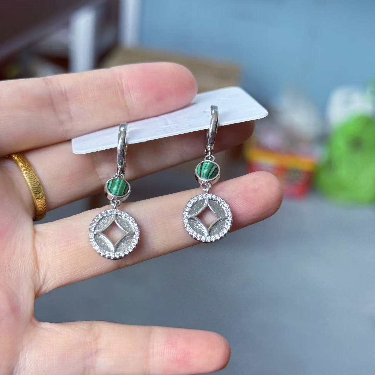爆款松石钱币耳环时尚招财铜钱复古高级中长款耳坠小众设计
