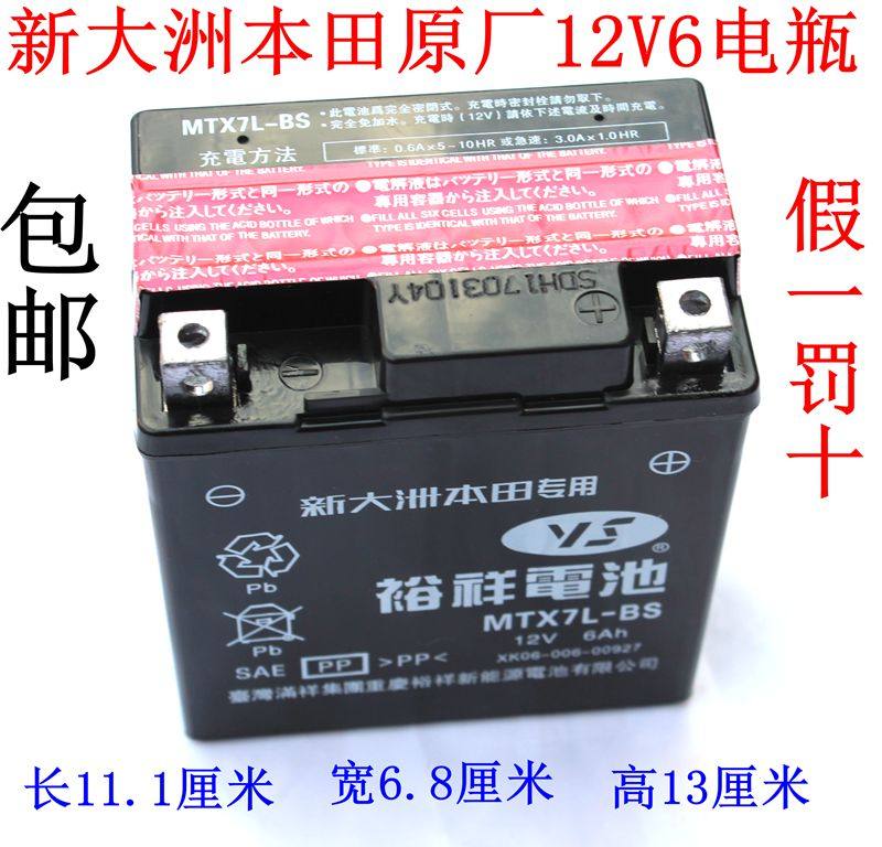 新大洲本田摩托车150战神免维护充电瓶干蓄电池12V6a安培专用配套