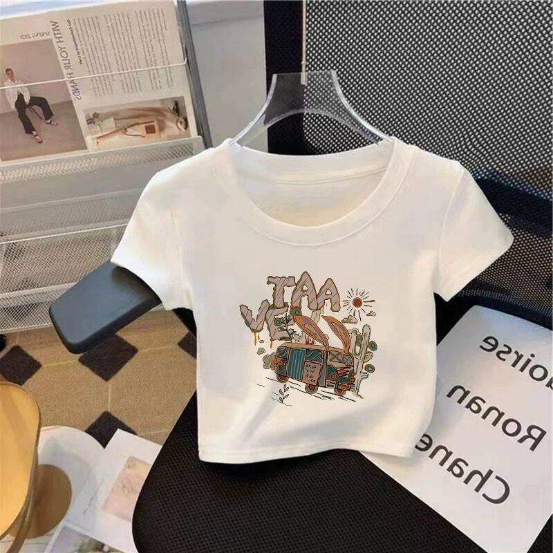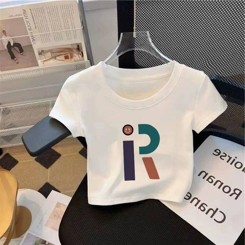 夏季短款纯棉T恤女修身显瘦露肚脐正肩上衣女小香风高腰全棉T恤女