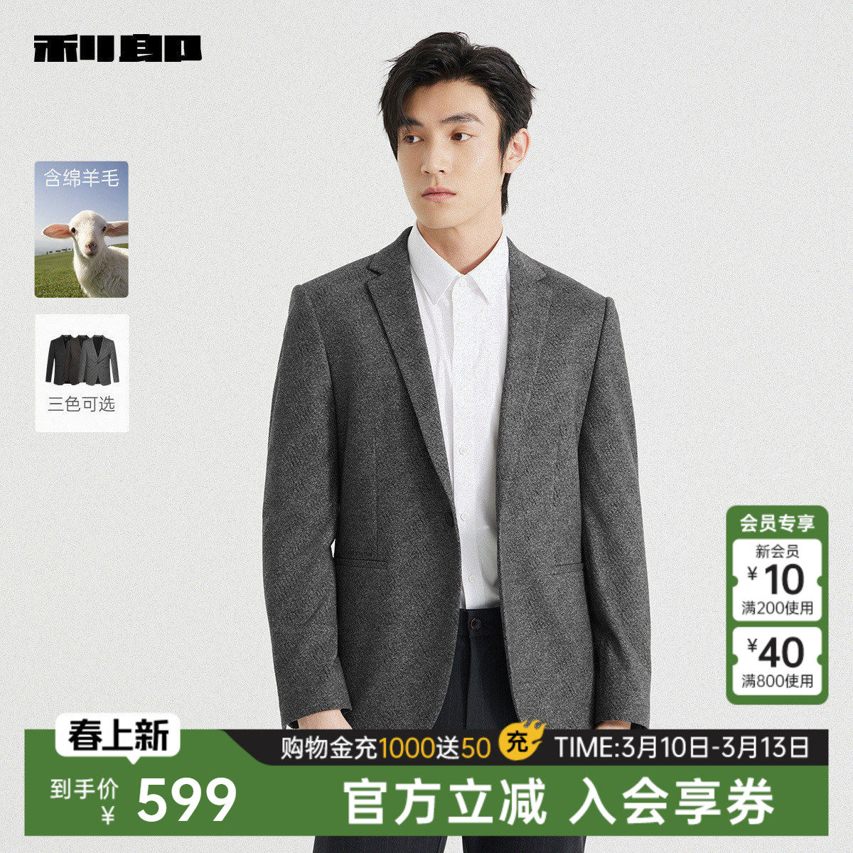 【含绵羊毛】利郎官方西服男士春秋款新款商务休闲男装单西外套