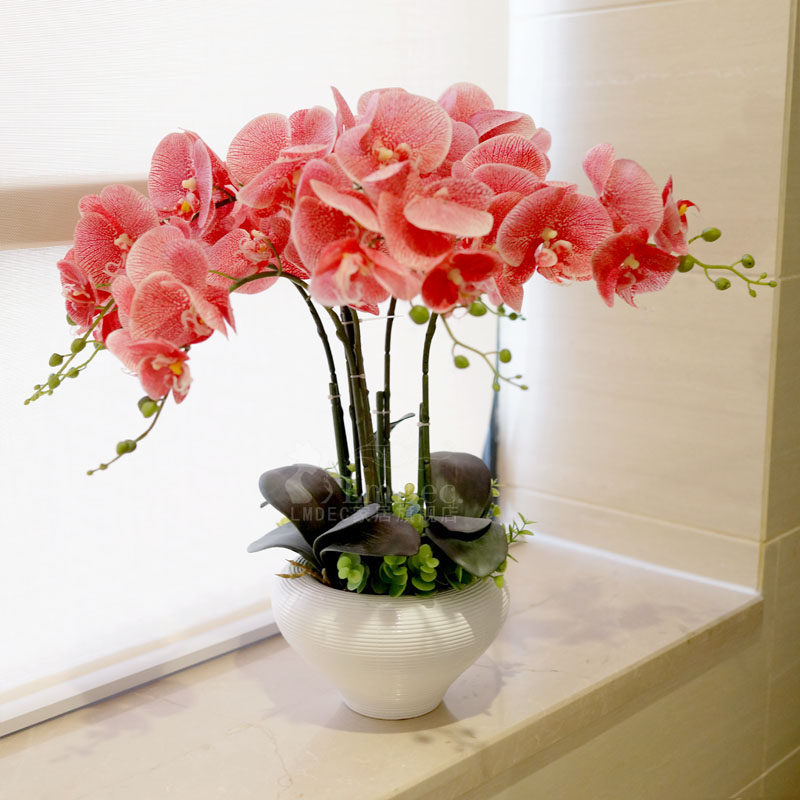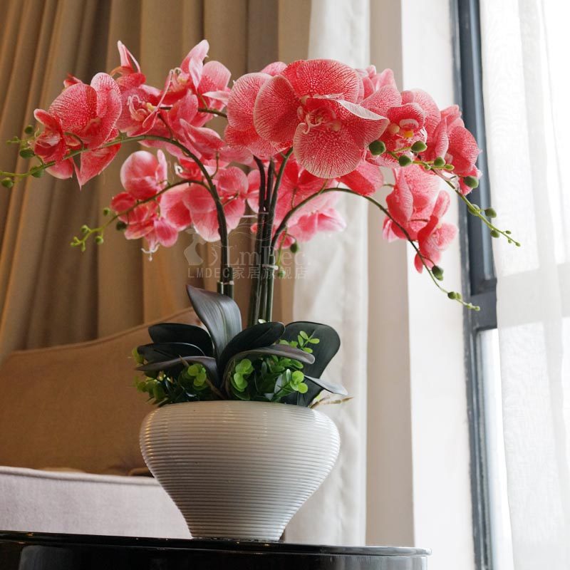 lmdec摆设花艺装饰花套装客厅 高仿蝴蝶兰花仿真花 餐桌花插花