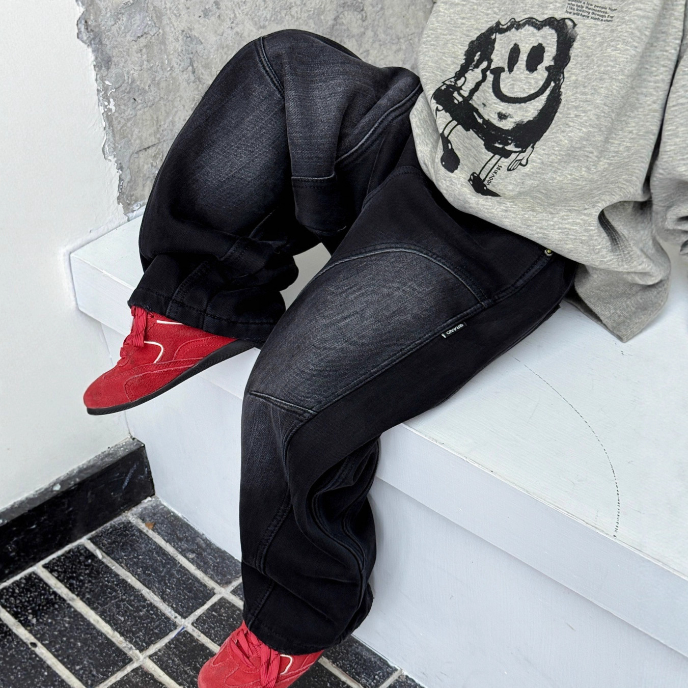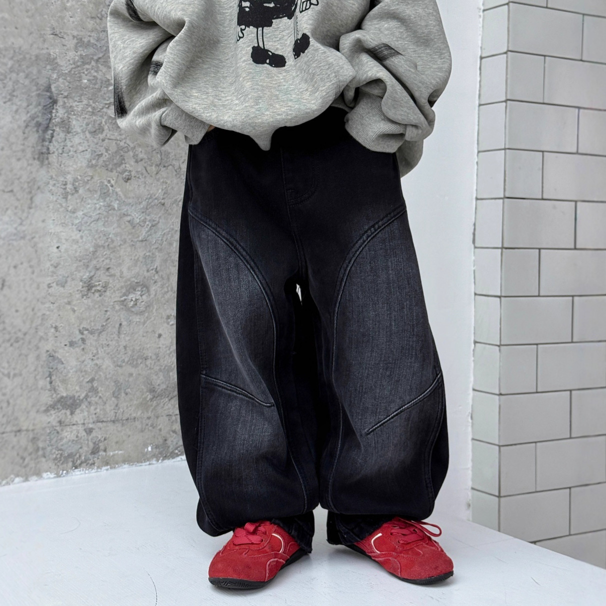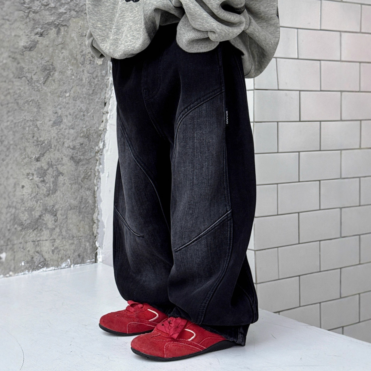 儿童牛仔裤弯刀裤冬季加绒加厚长裤男童中大童美式复古直筒裤
