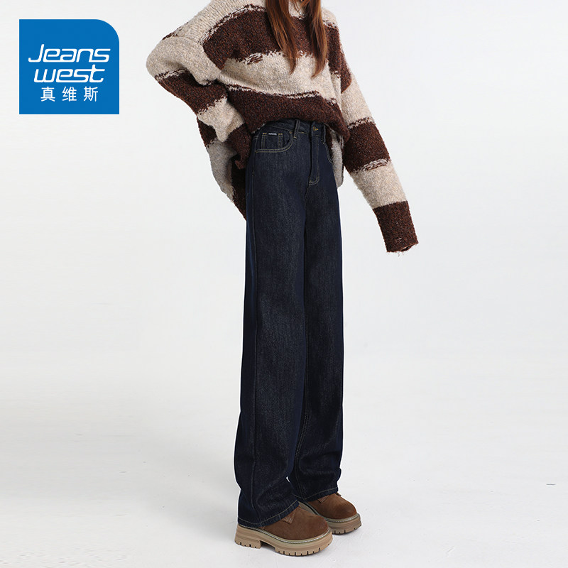 KZ真维斯春秋季宽松休闲阔腿高级感超好看牛仔裤子女生潮流长裤女