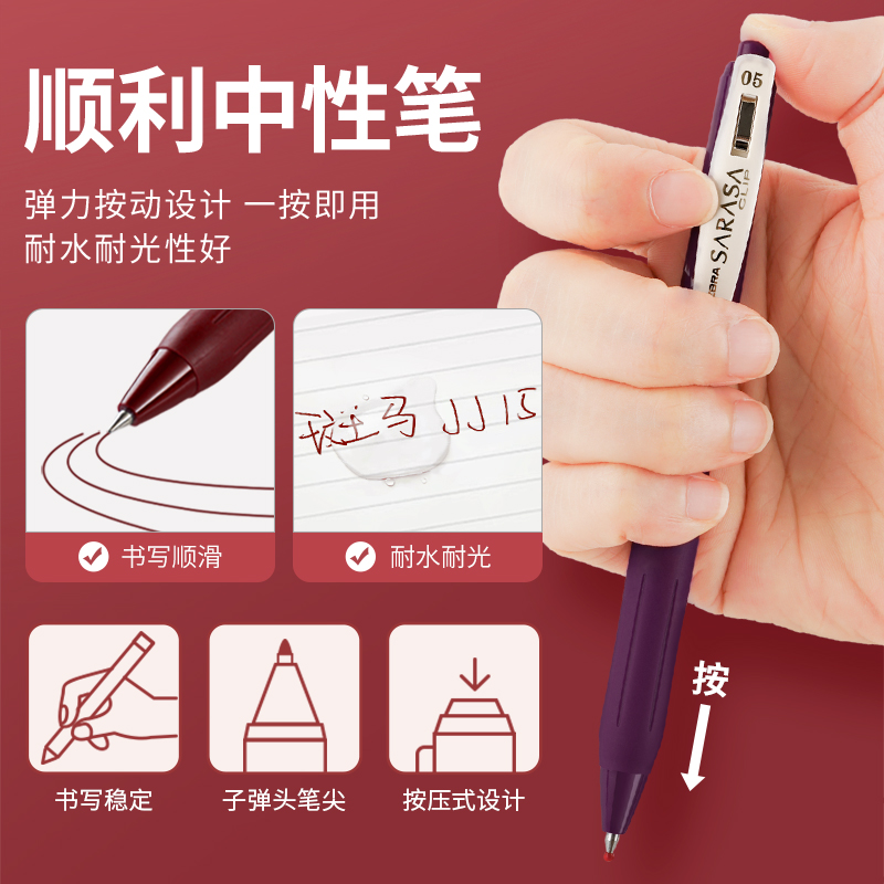 日本ZEBRA斑马官方旗舰店官网JJ15复古系列SARASA按动式中性笔彩色驼黄湖蓝黑加仑水笔可换替芯0.5笔夹限定款