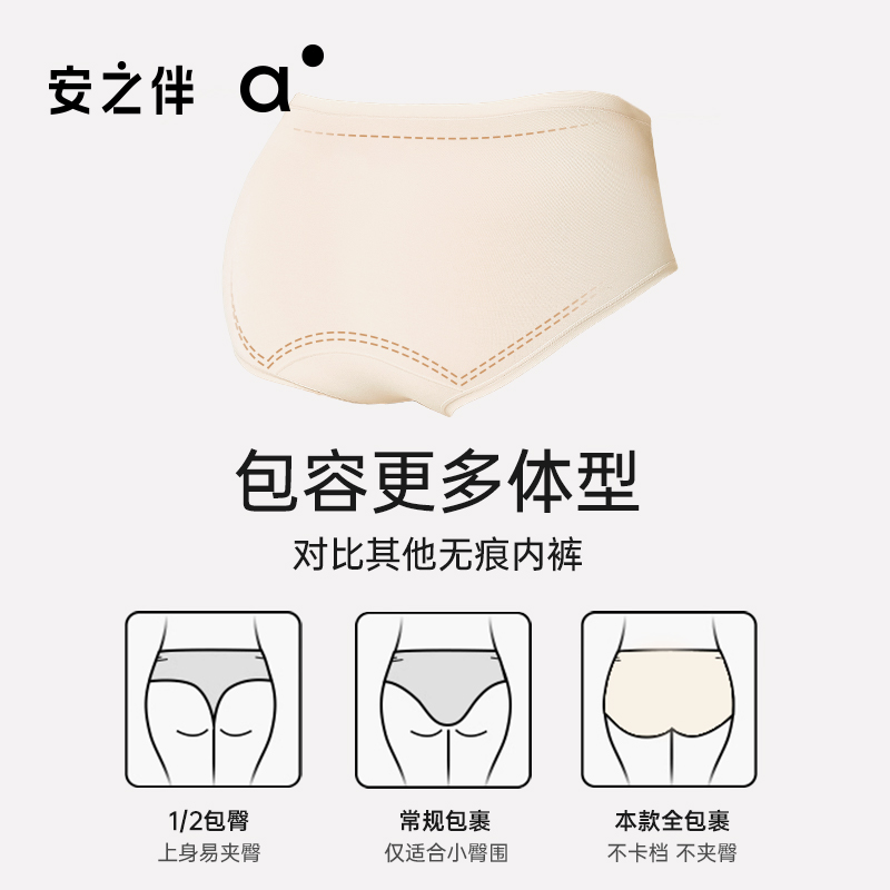 安之伴内裤女士莫代尔无痕包臀中腰薄款透气加大码不夹臀三角裤
