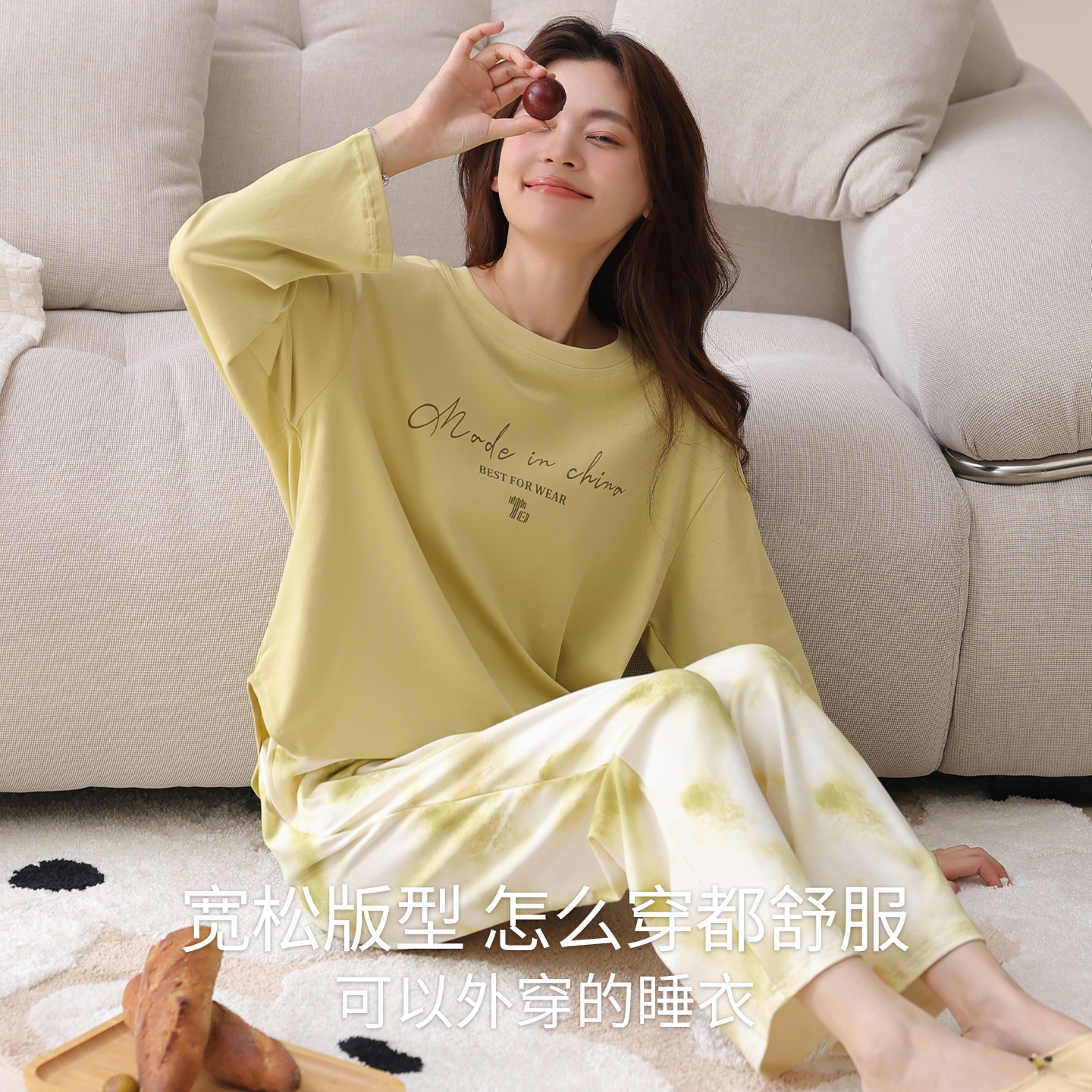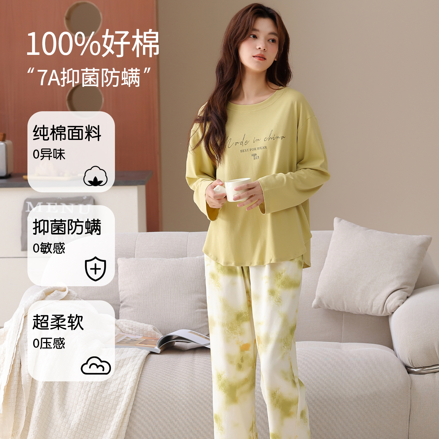 浪莎A类纯棉睡衣女7A抗菌春秋季长袖宽松休闲女士秋冬家居服套装
