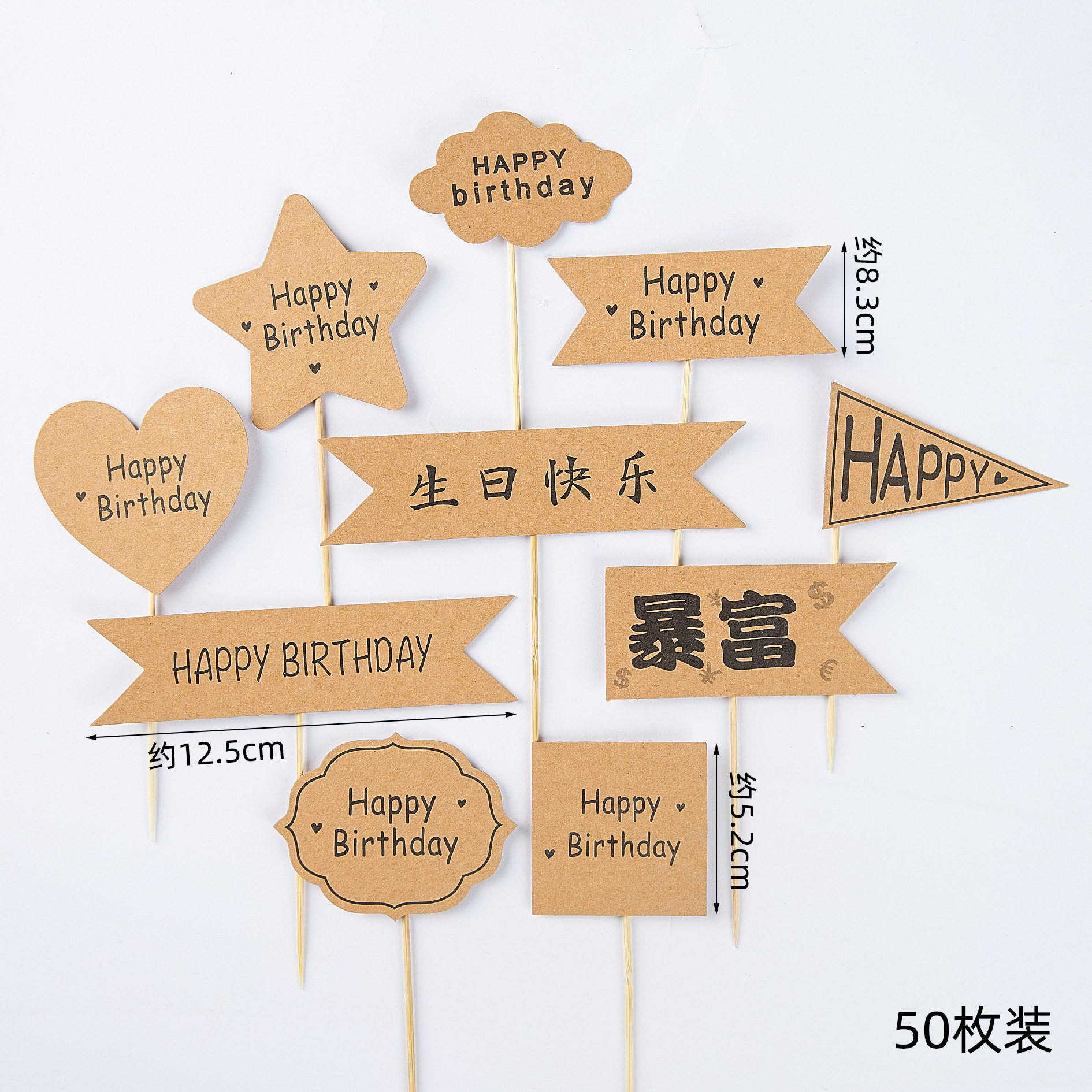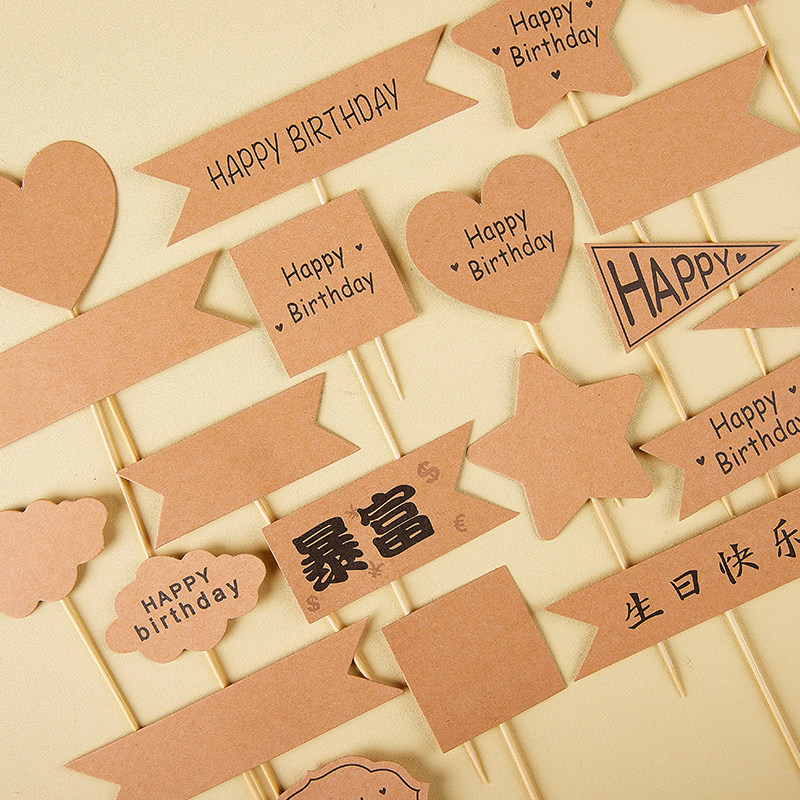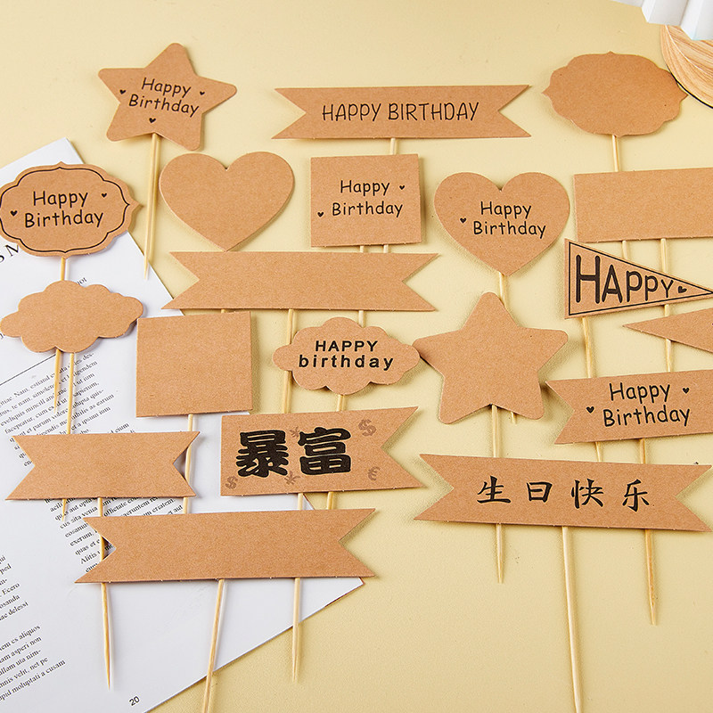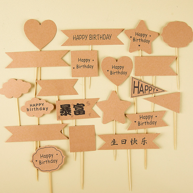 森系蛋糕装饰插牌网红牛皮纸可写字方牌生日插件小清新牛皮色插旗