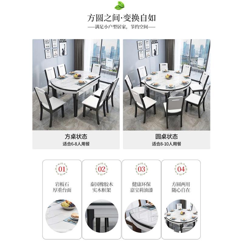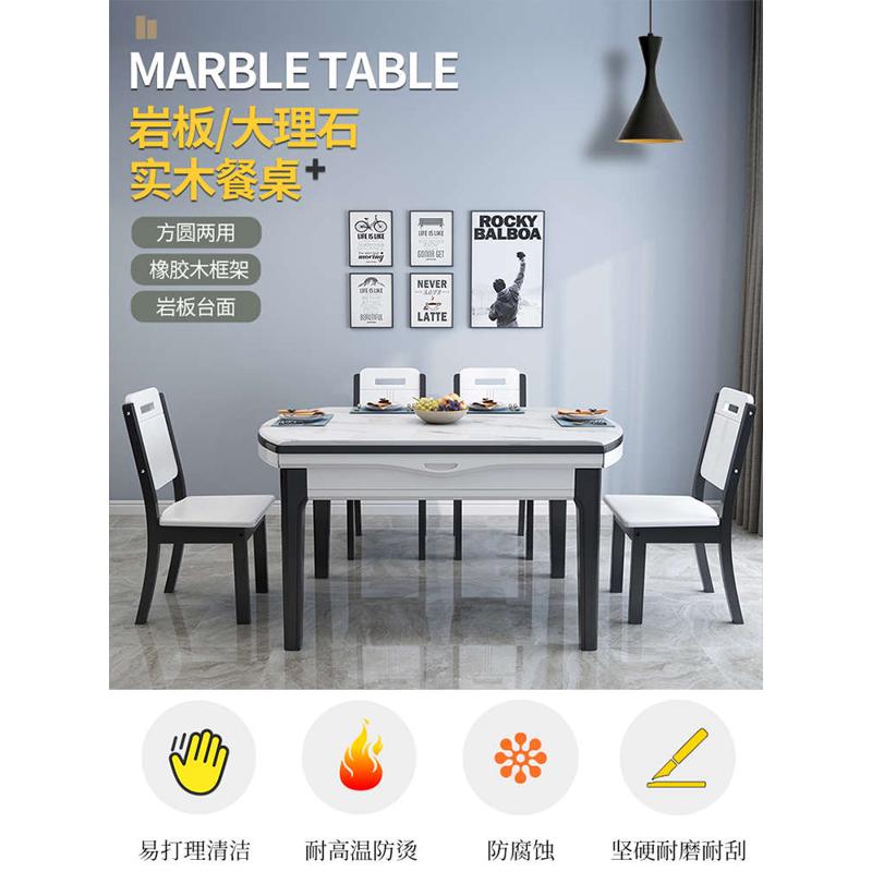 岩板实木餐桌组合现代简s约可伸缩折叠家用小户型长方形饭桌椅子