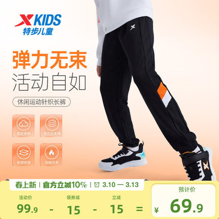 特步童装男童拼接运动裤儿童长裤青少年春秋新款大童防蚊裤子春装