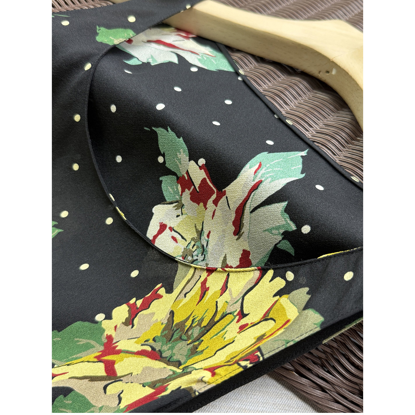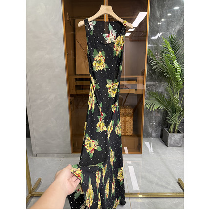代厂P牌!斜裁真丝双绉印花圆领无袖不规则连衣裙 20251213~ME