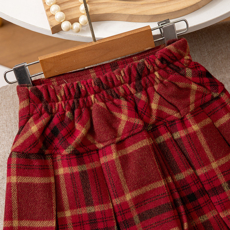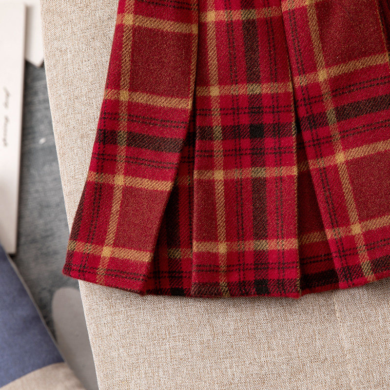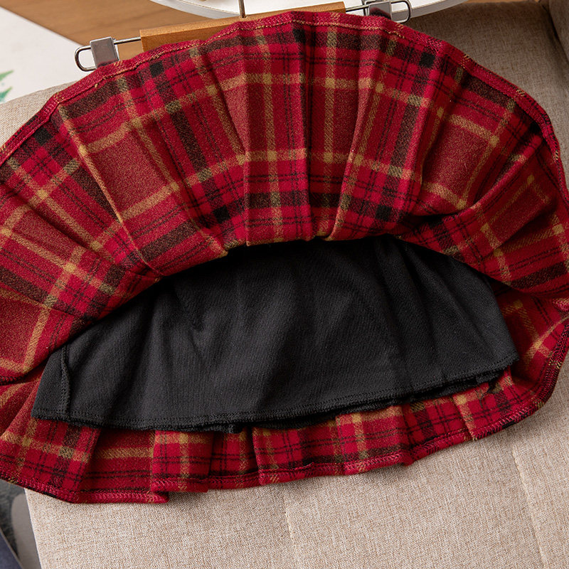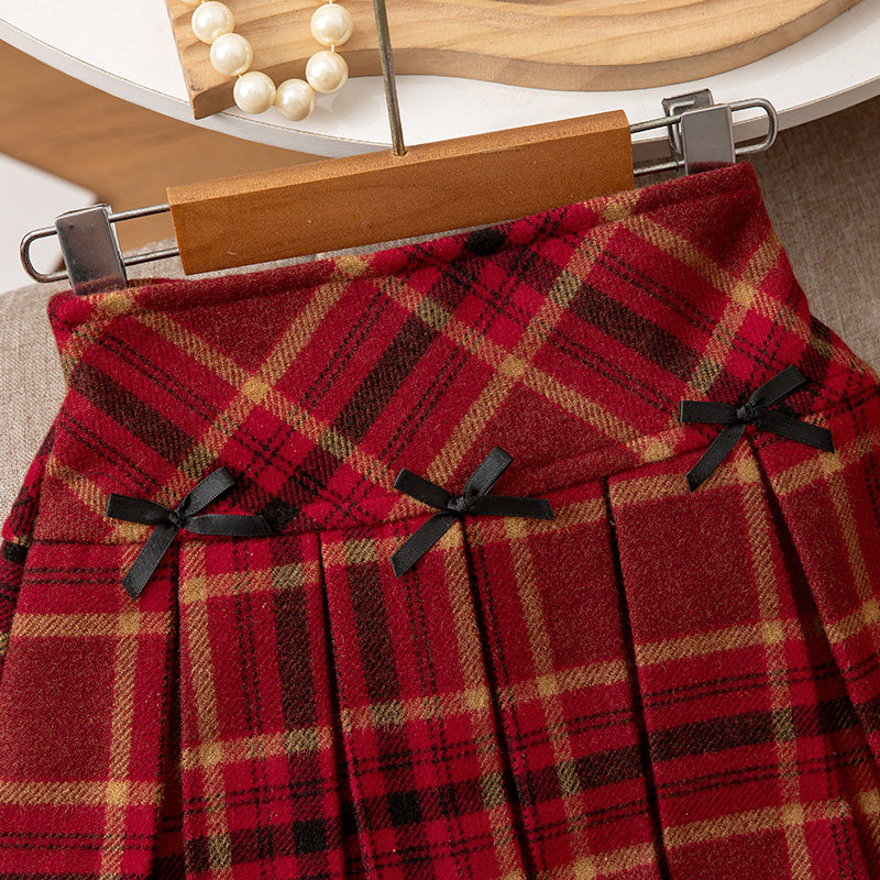 女童半身裙秋冬新款洋气儿童红色格子短裙韩版百搭新年女孩百褶裙
