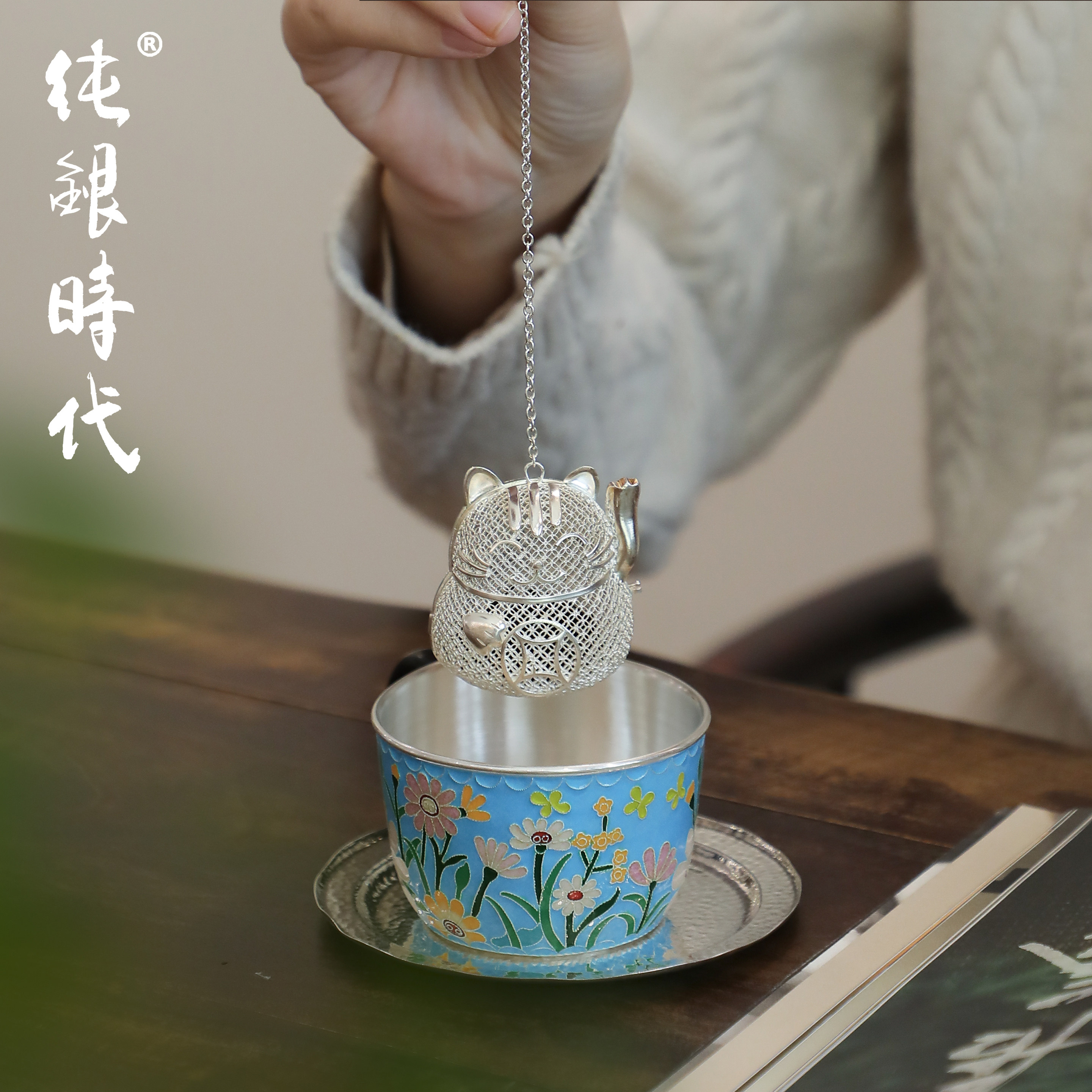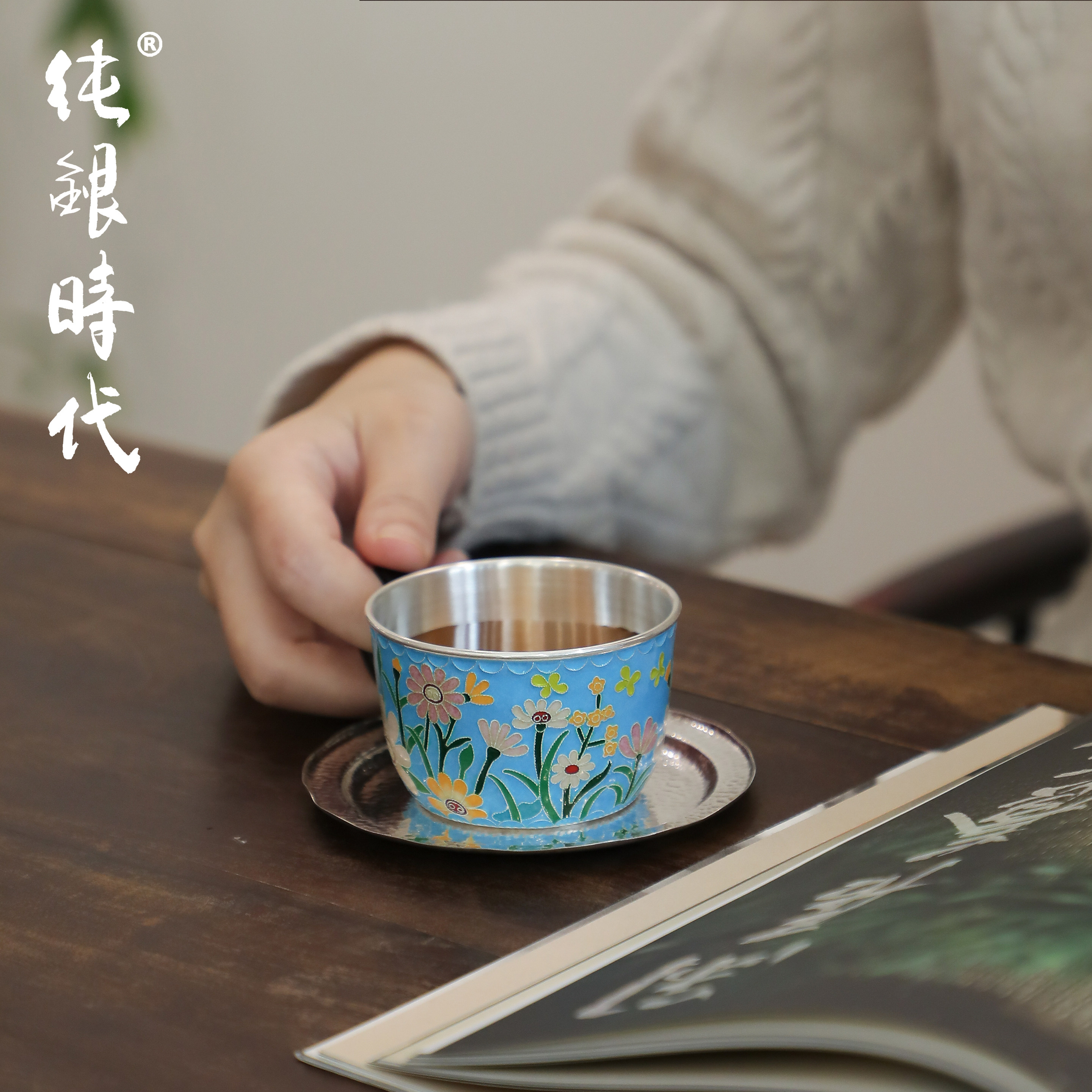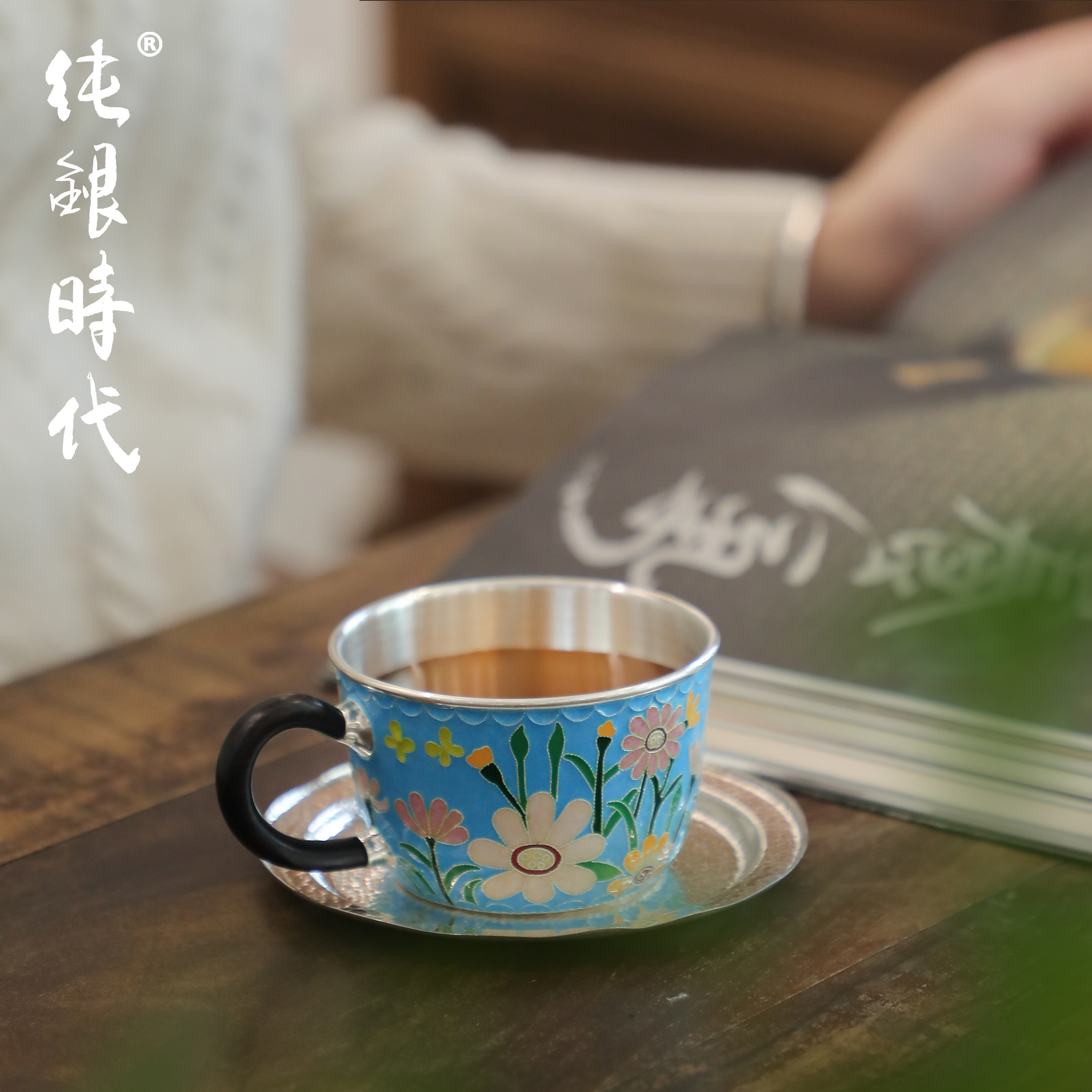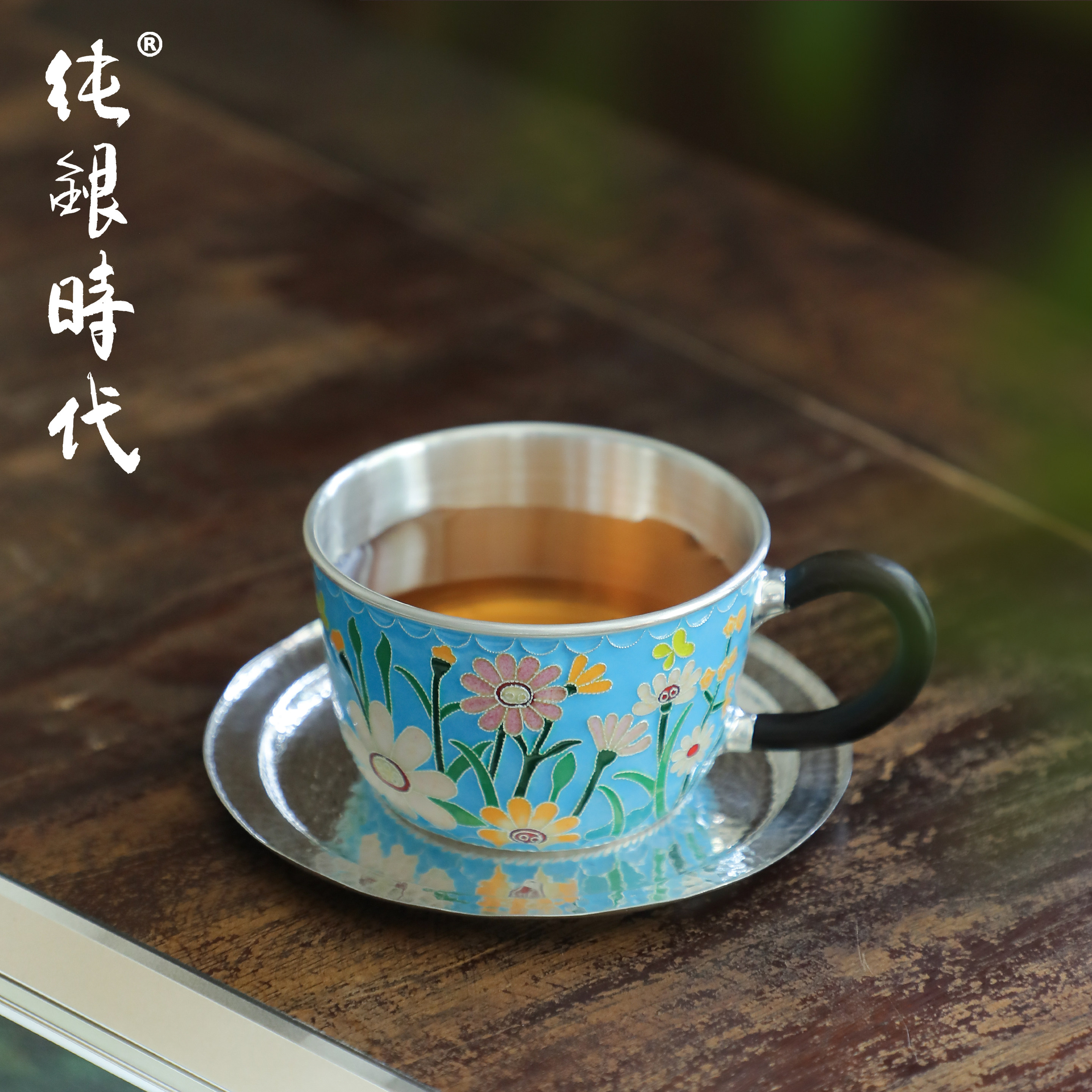 纯银时代 花漾马克杯纯银999手工七宝烧小巧可爱茶杯咖啡杯130ml