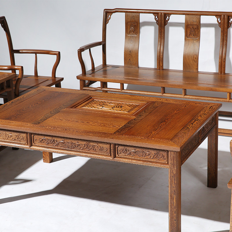红木客厅家具 鸡翅木沙发 仿古中式沙发茶桌椅组合 实木古典沙发