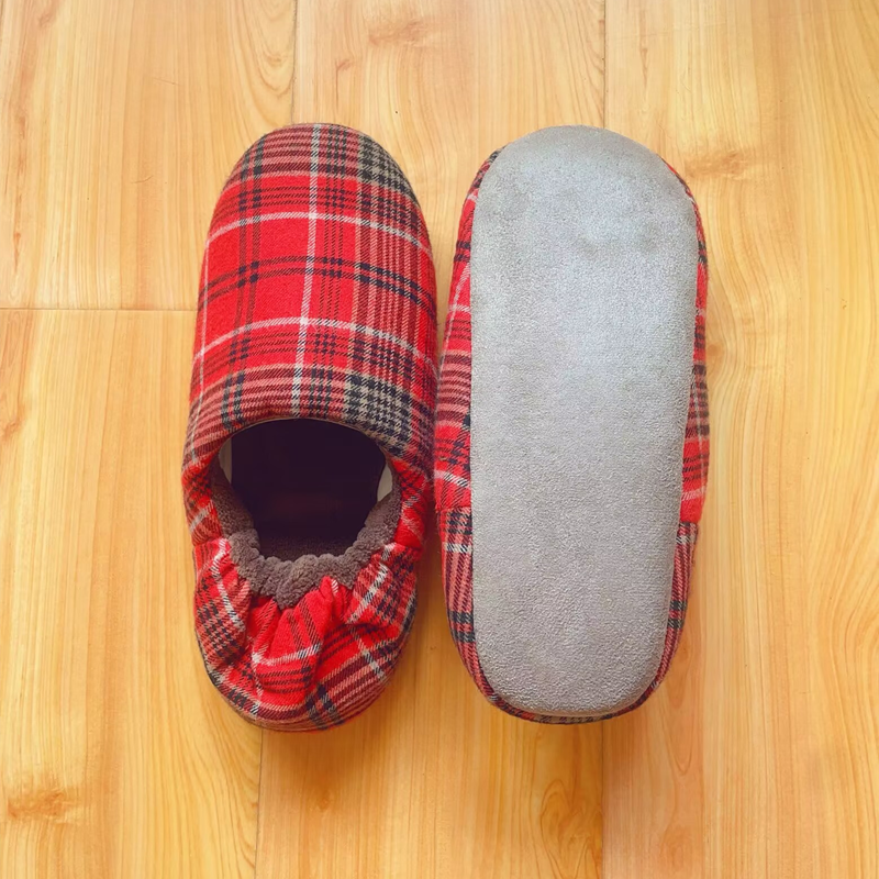 男女通用包跟拖鞋情侣静音地板卧室家居月子鞋柔软舒适秋冬天格纹