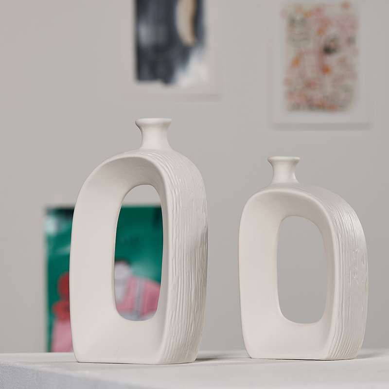 严选现代白色陶瓷干花花瓶小清新水培家居欧式装饰摆件客厅插花
