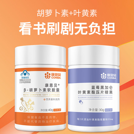 康恩贝蓝莓叶黄素酯dha片成人儿童咀嚼片+胡萝卜素维生素a软胶囊