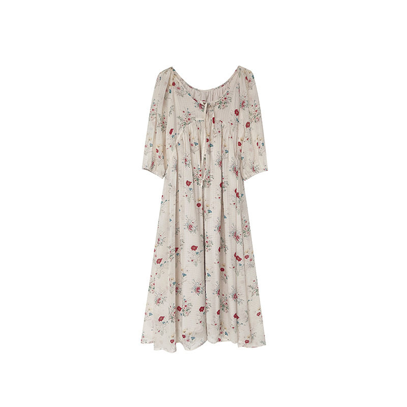 江左 荒野花海 法式浪漫显瘦碎花连衣裙女法式气质大摆长裙子1508