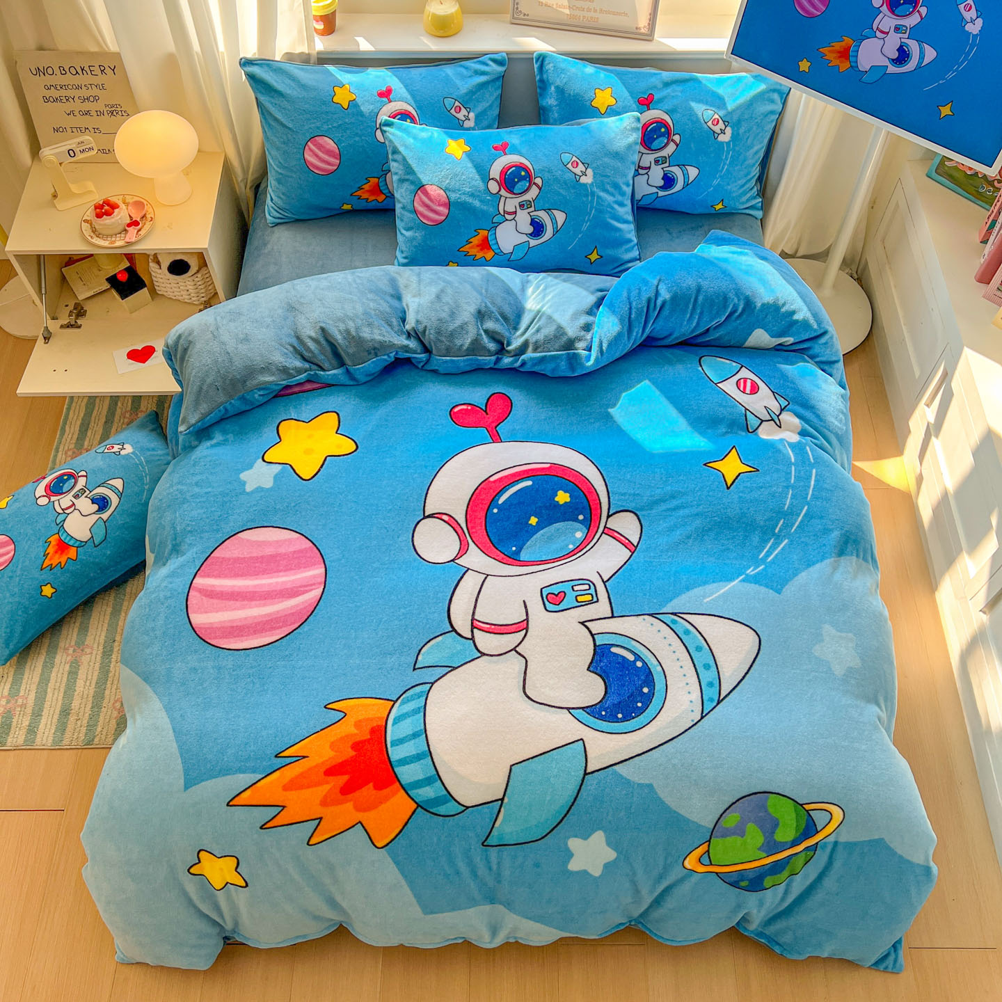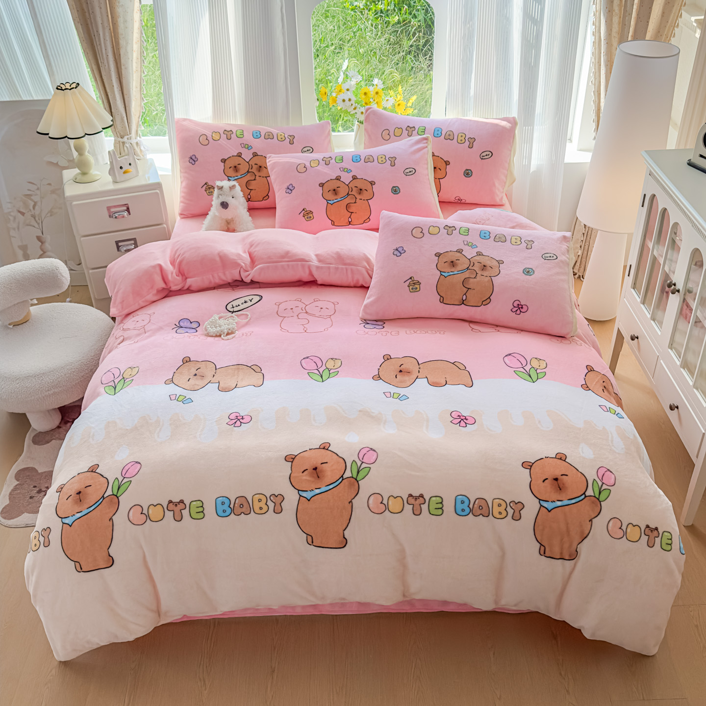 卡通可爱牛奶绒儿童床上三四件套冬保暖加厚加绒被套卡皮巴拉布布