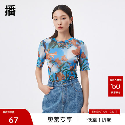 【播奥莱】播夏新款商场同款数字化印花撞色包滚结构线花式衬衫