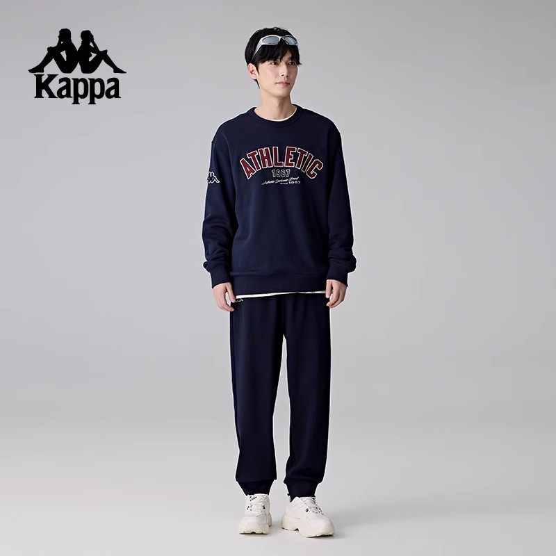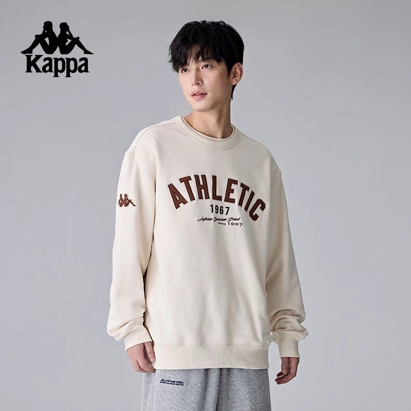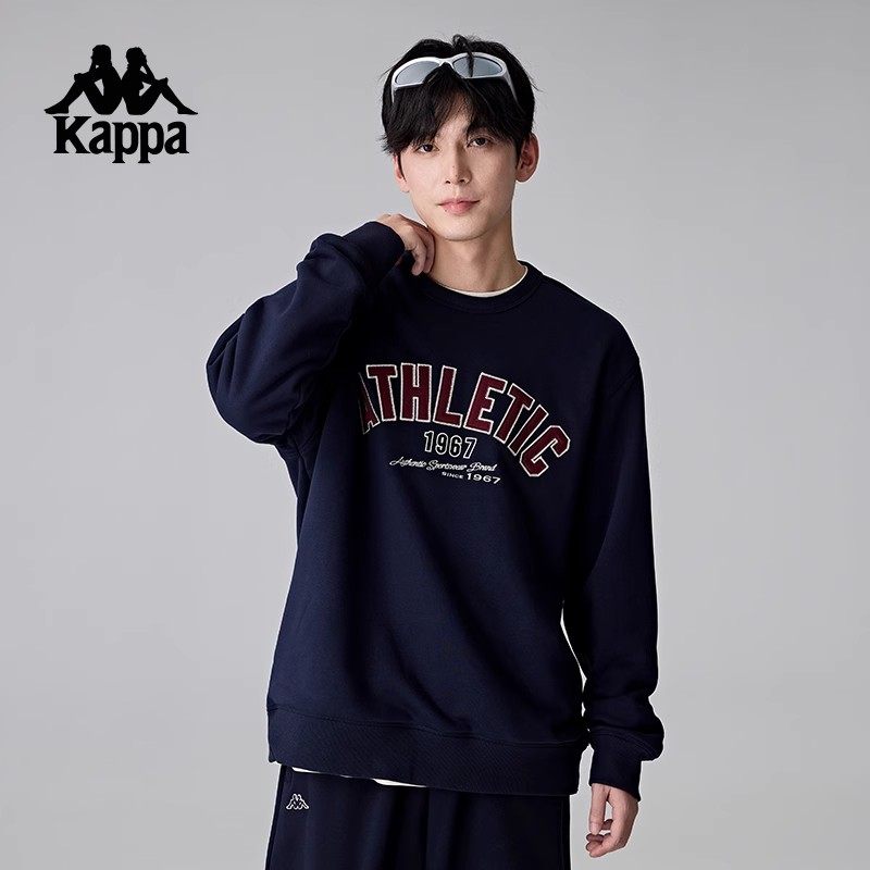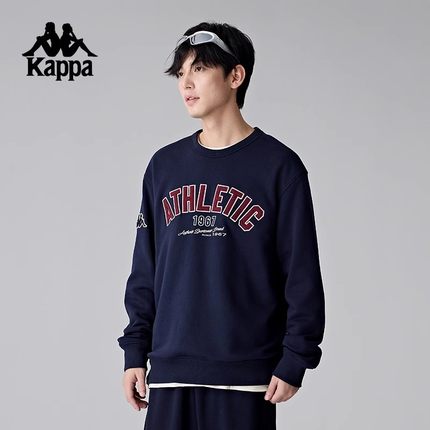 Kappa卡帕背靠背春秋复古卫衣新款男保暖运动针织套头衫休闲上衣