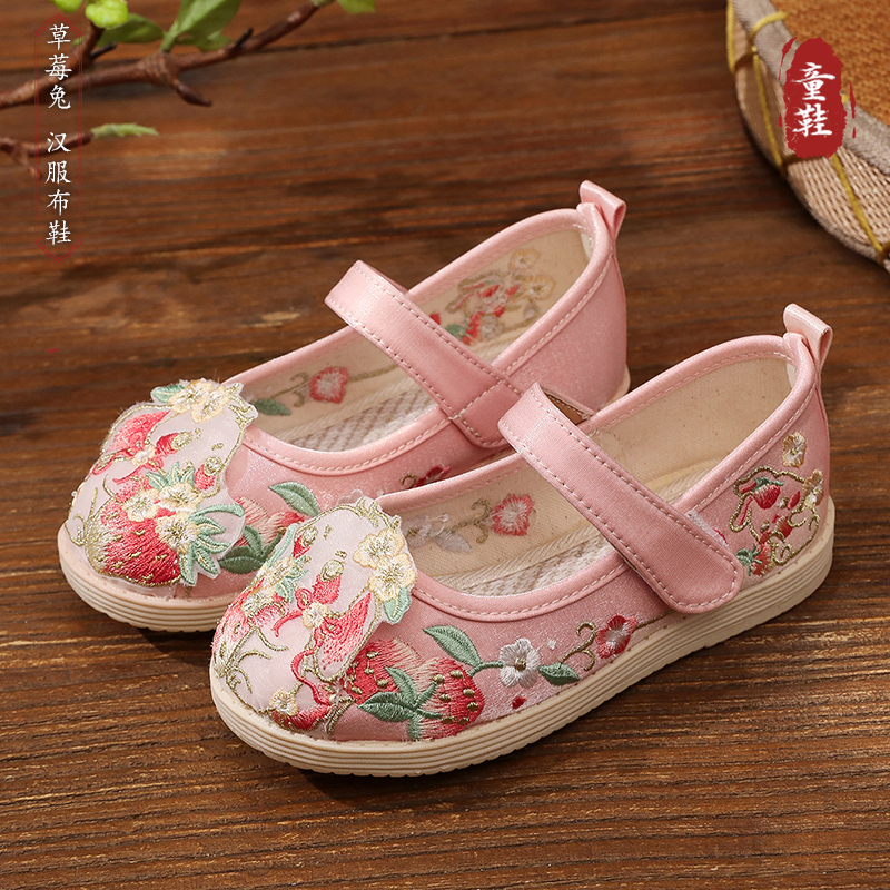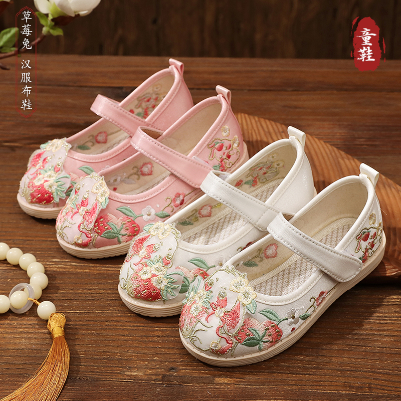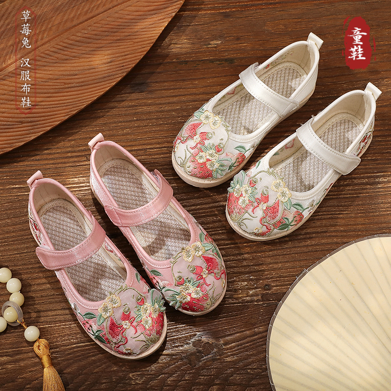 女童汉服鞋子2025春秋新款老北京布鞋中式国风古装古风儿童绣花鞋