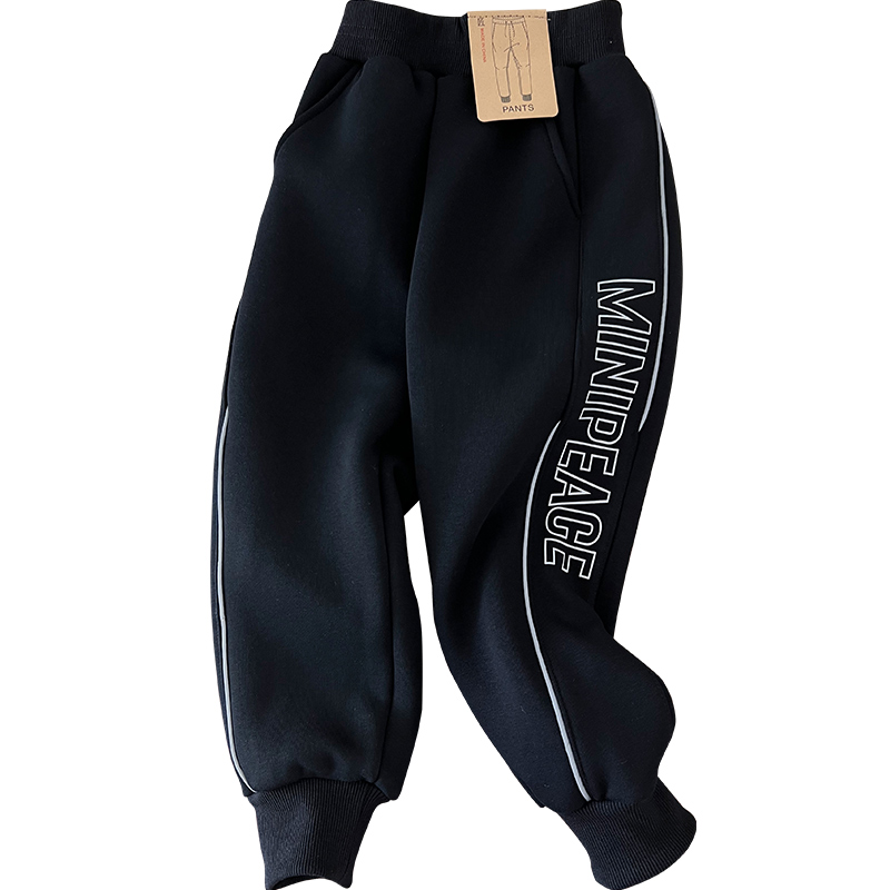 超值划算 反光条~儿童加绒运动裤男童保暖卫裤中大童一体绒厚长裤