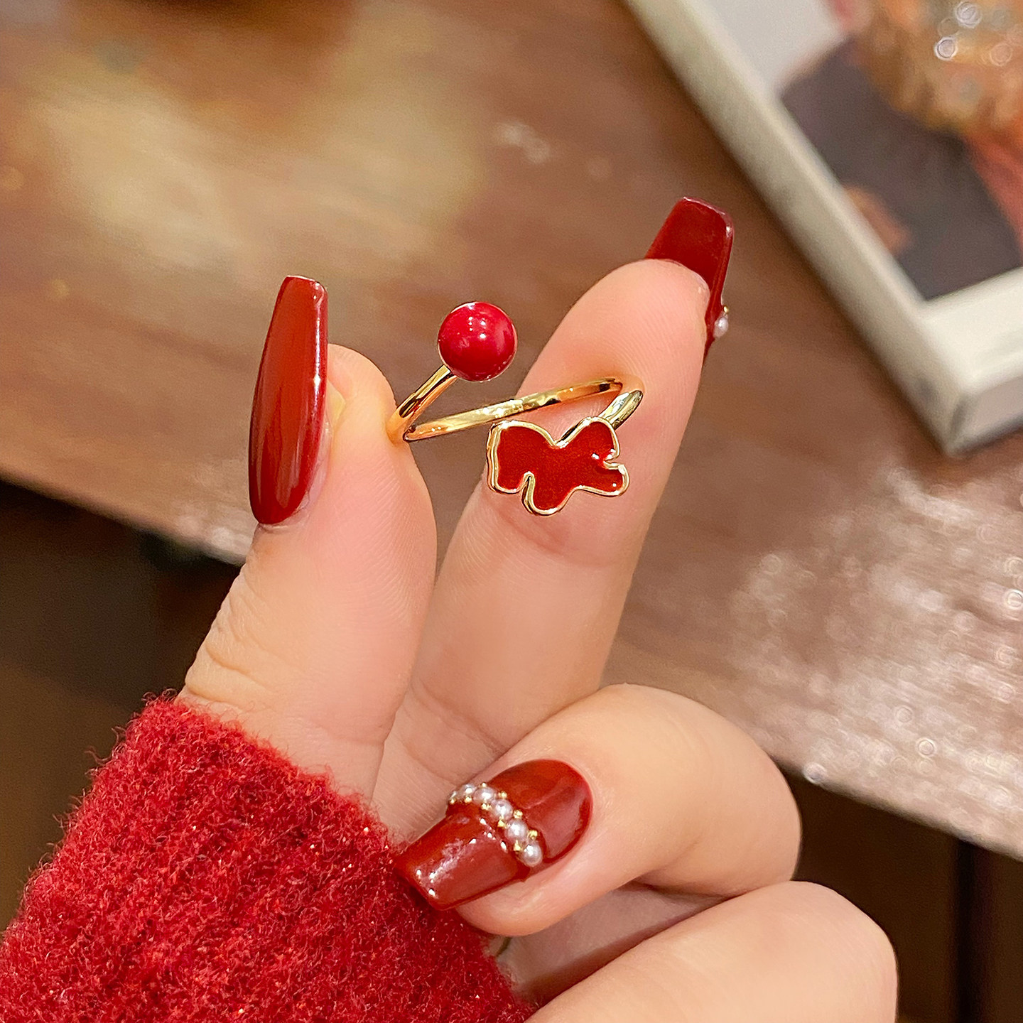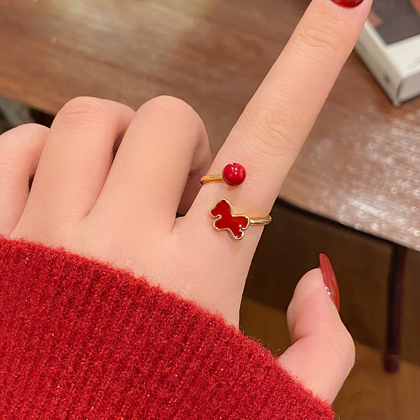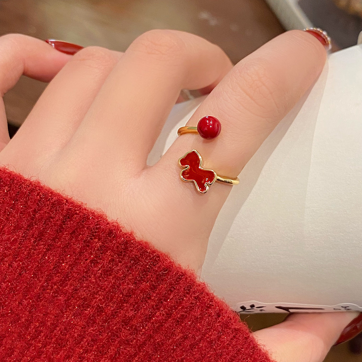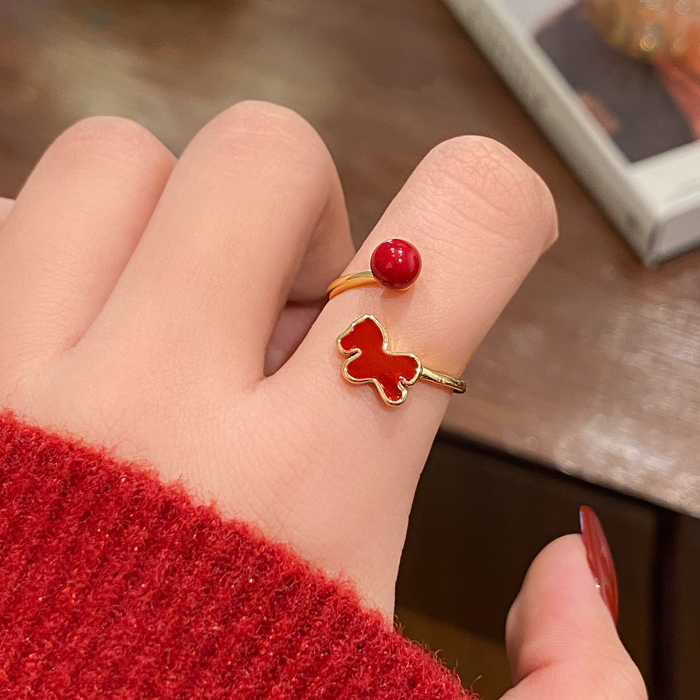 新年小马红色开口戒指女2026新款爆款小众设计食指环轻奢高级感