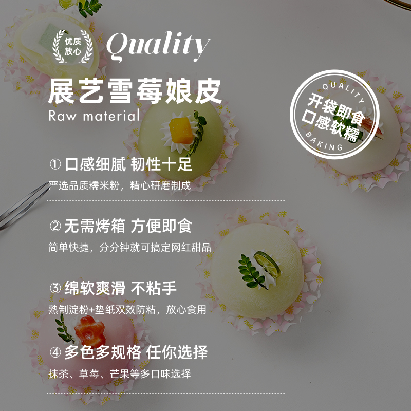 展艺雪媚娘皮日式半成品雪梅娘皮粉大福糯米糍甜品制作材料全套